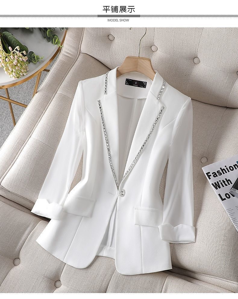 다이아몬드로 장식 된 세트 여성 봄과 여름 2025 새로운 도착 7 점 소매 고급 작은 재킷 디자인 센스 틈새 패션 캐주얼 세트