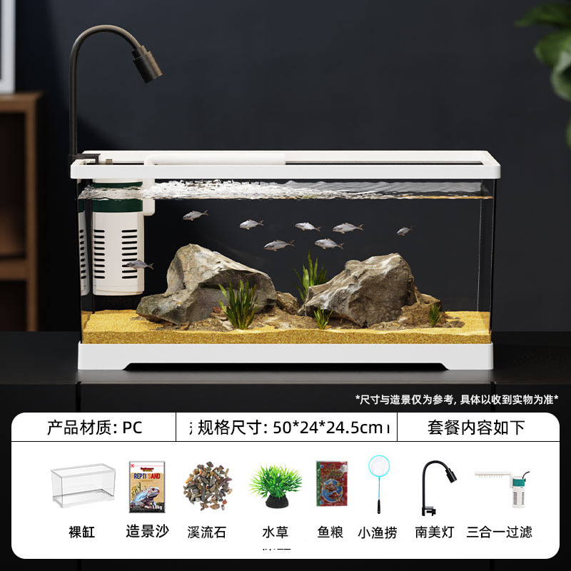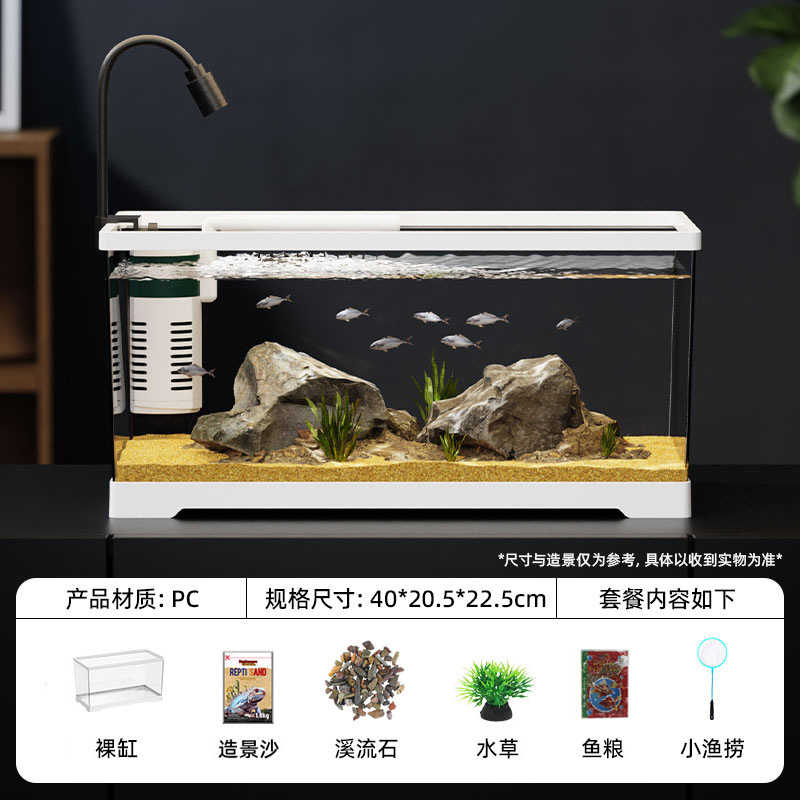 물고기 탱크 2025 새로운 가정 통합 형성 금붕어 탱크 작은 거실 데스크탑 플라스틱 스트림 풍경 생태 전체스토어 가기