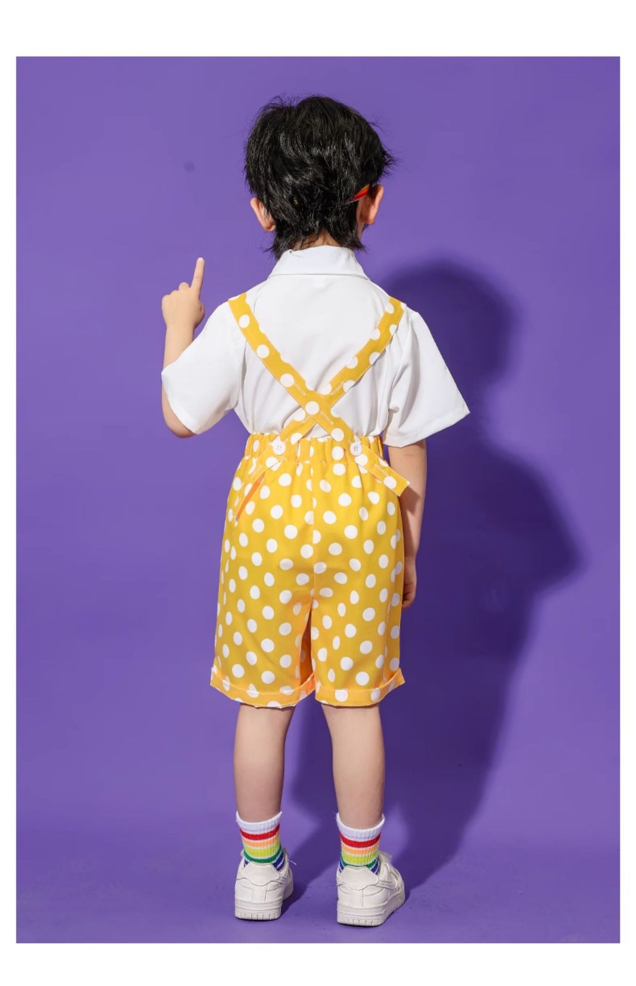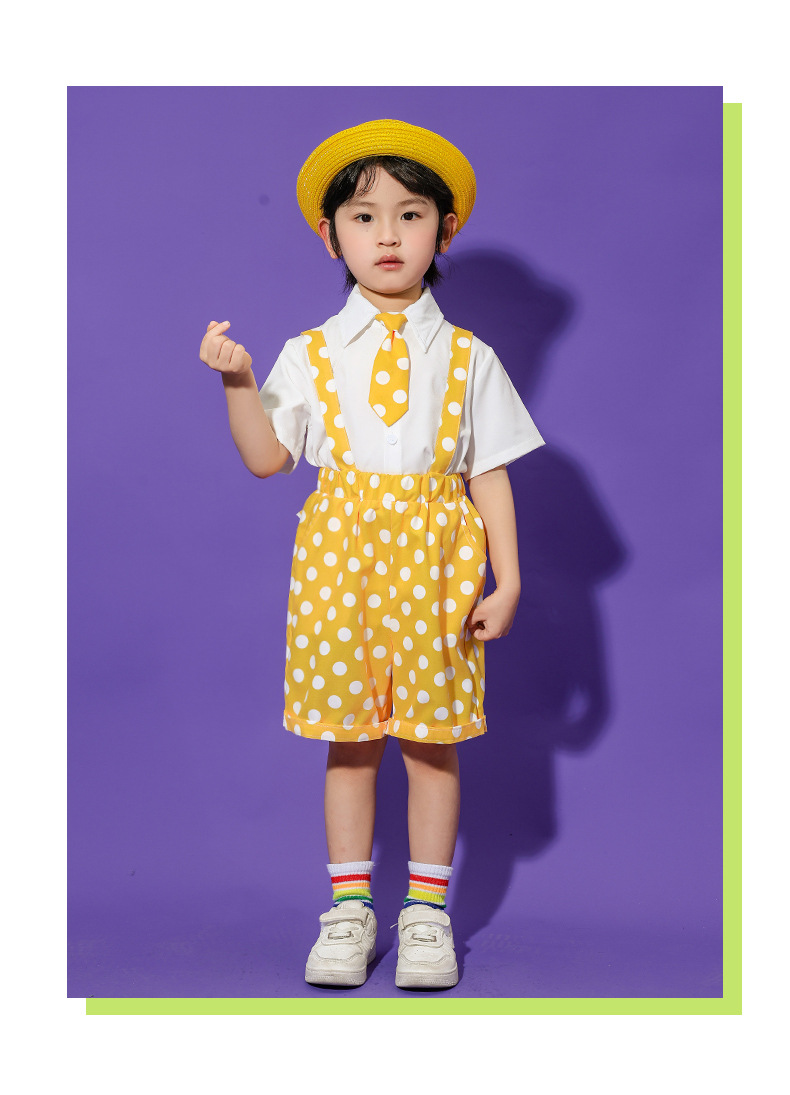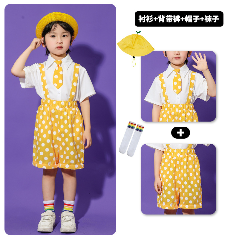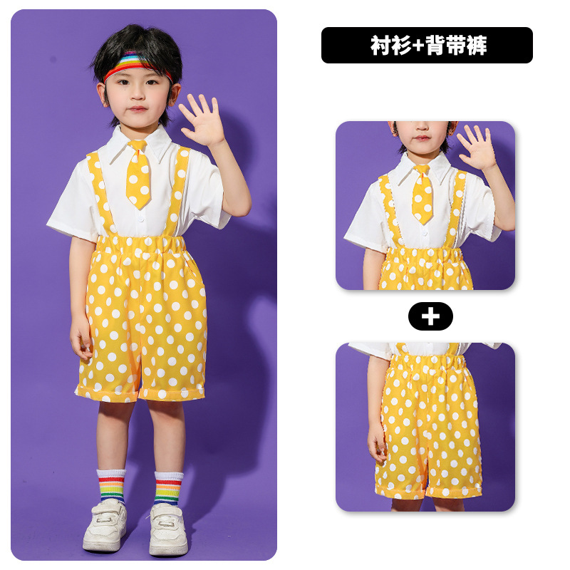 어린이 어린이 공연 의상 유치원 귀여운 노란색 스트랩 바지 댄스 옷 소녀 소녀 코러스 공연 의상
