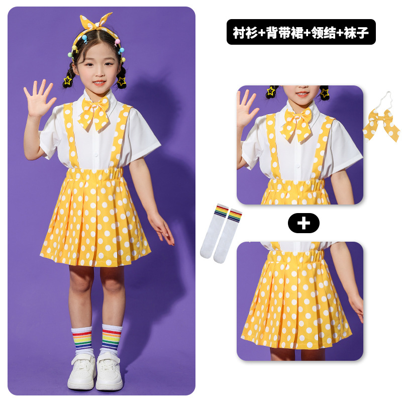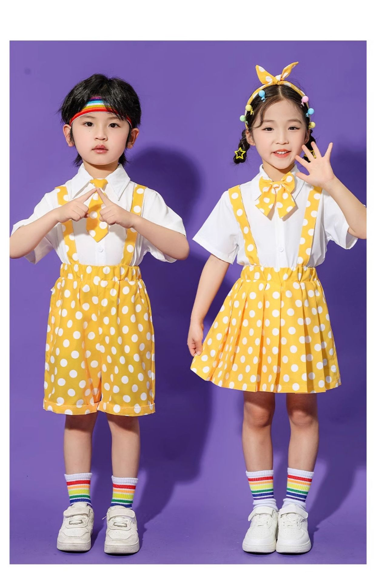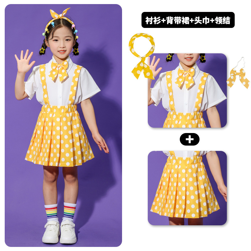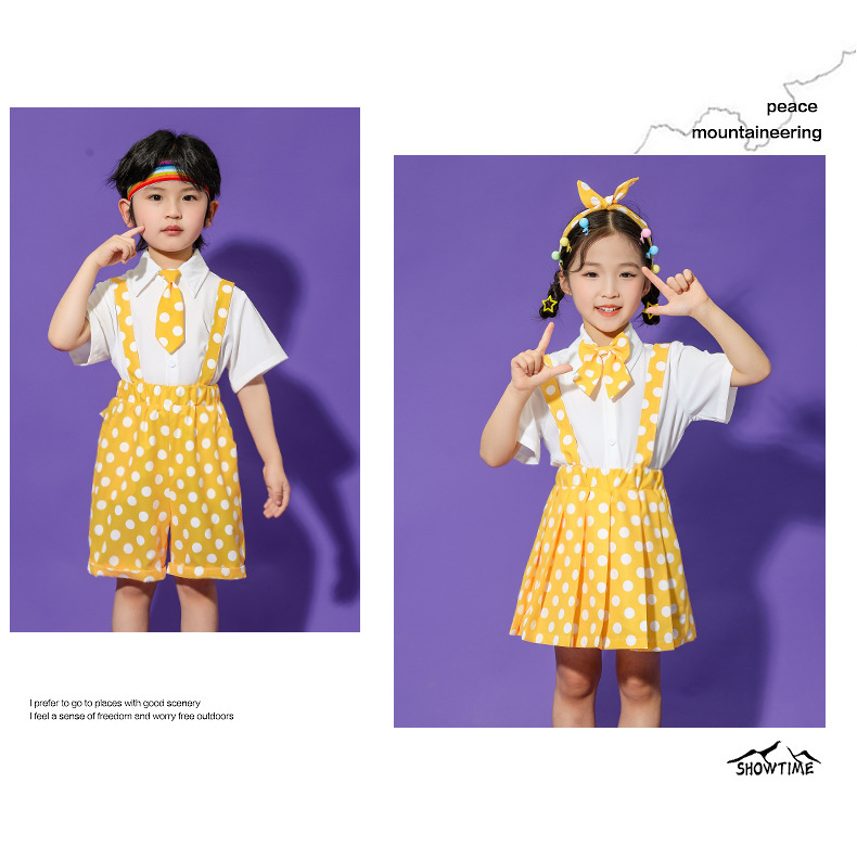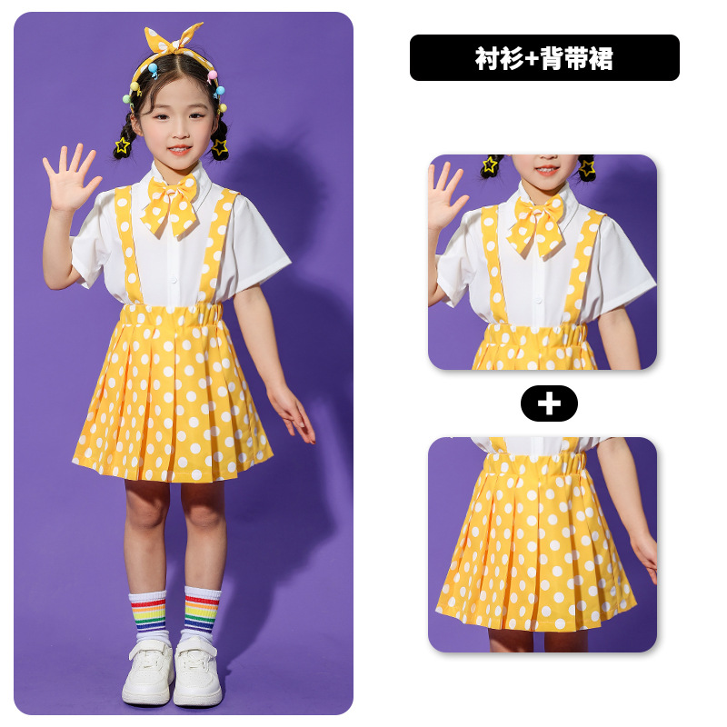 어린이 어린이 공연 의상 유치원 귀여운 노란색 스트랩 바지 댄스 옷 소녀 소녀 코러스 공연 의상