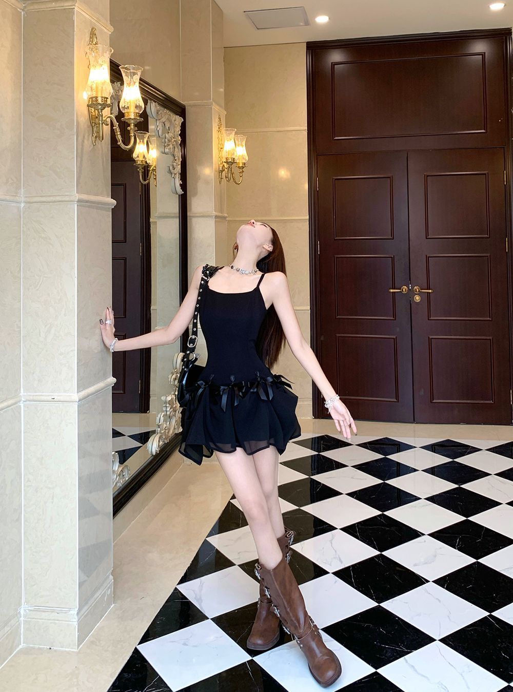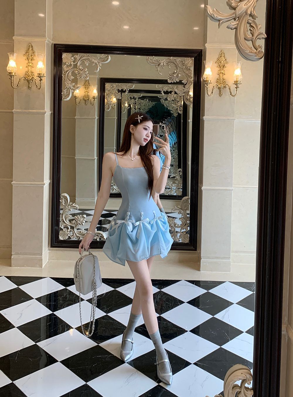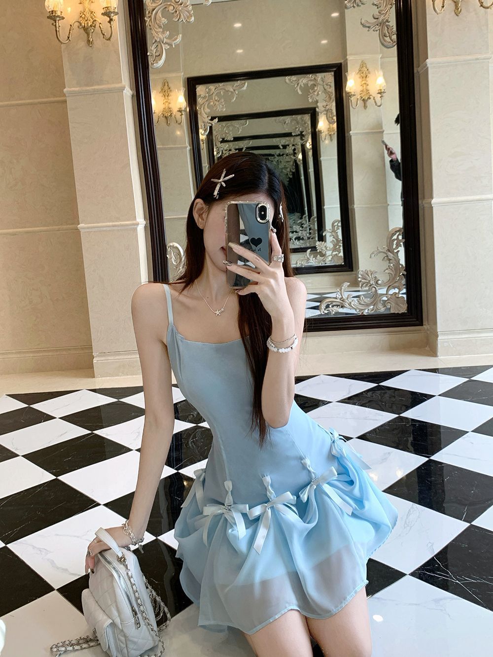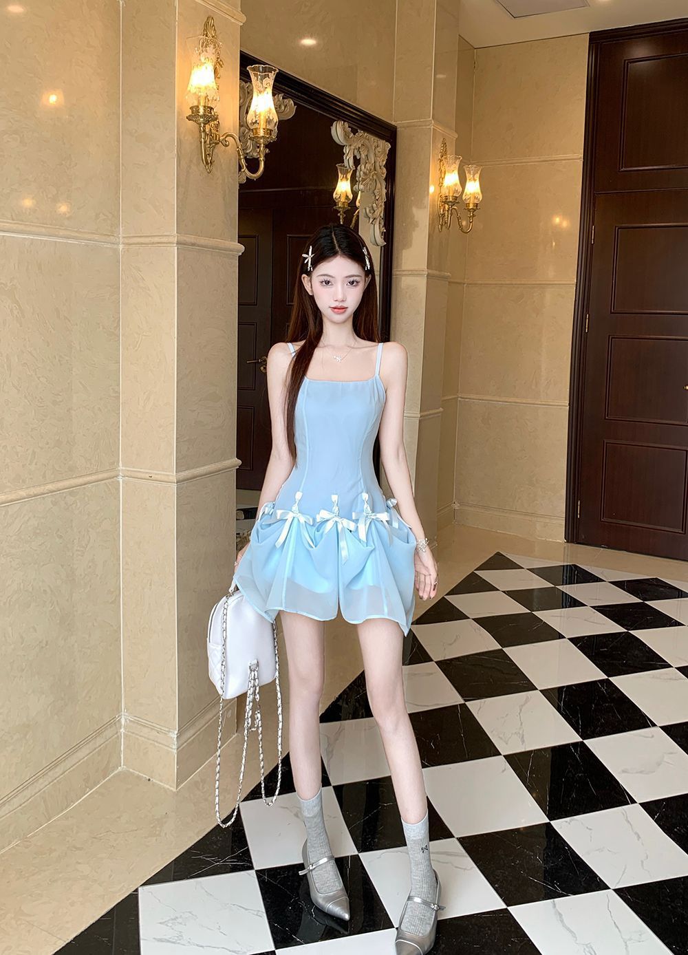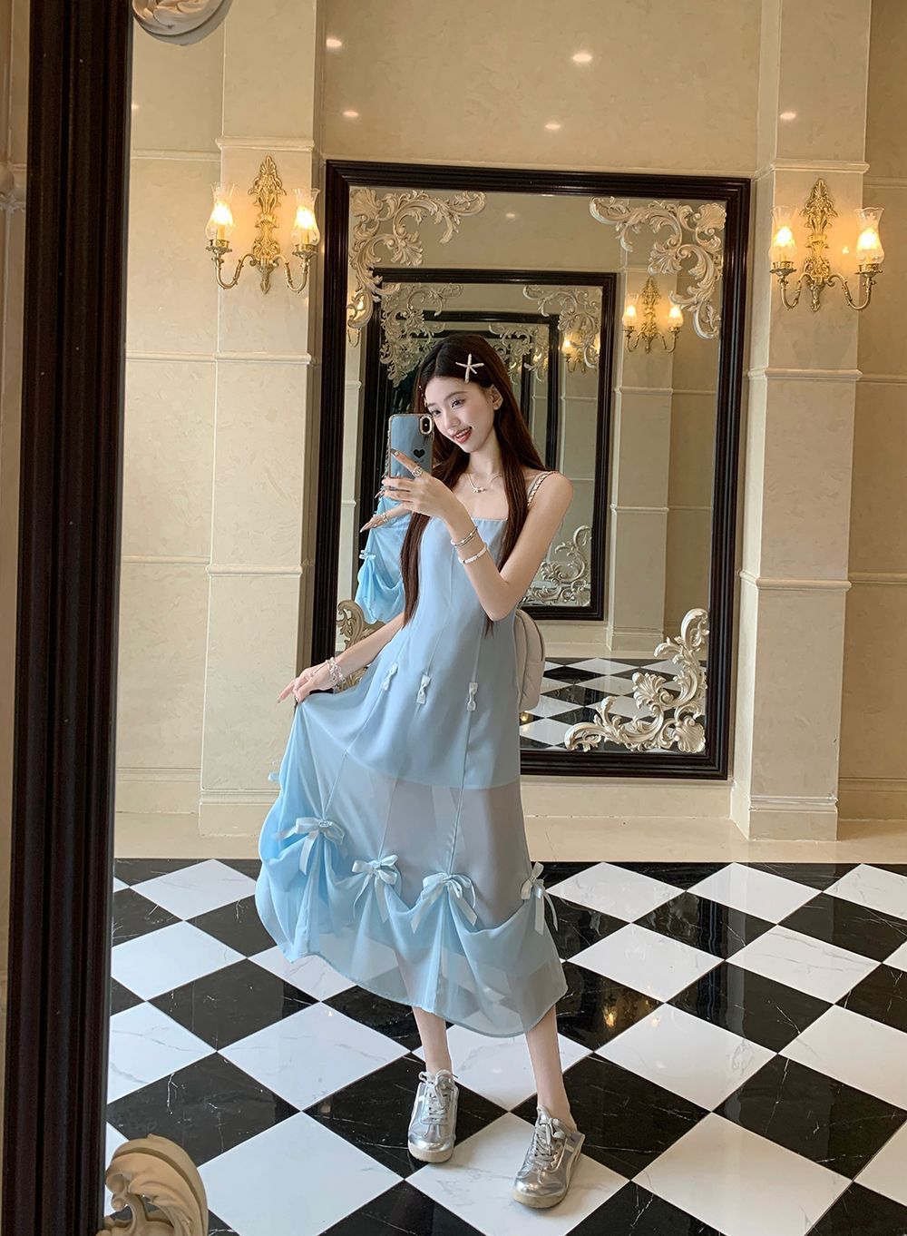 활 우아한 슬리밍 슬링 원피스 여성의 2025 봄과 여름 디자인 센스 더블웨어 슈퍼 요정 허리 슬리밍 긴 원피스스토어 가기