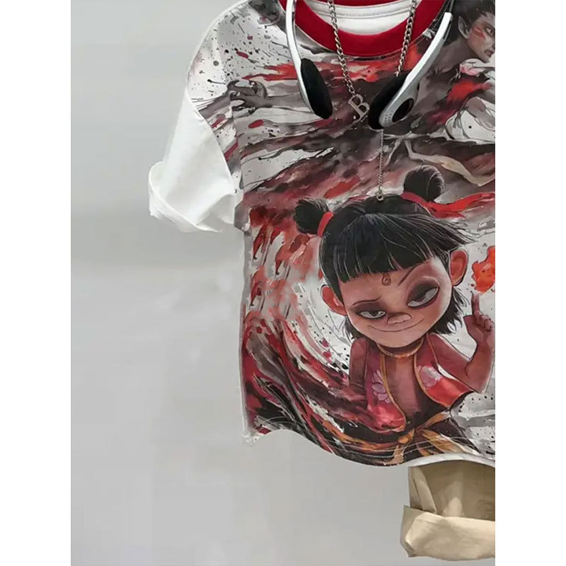 어떤 아동복 소년 반팔 티셔츠 여름 2025 새로운 온라인 인기 튀김 거리 소녀 바닥 셔츠 톱 조수 5