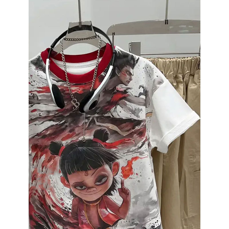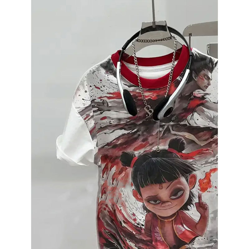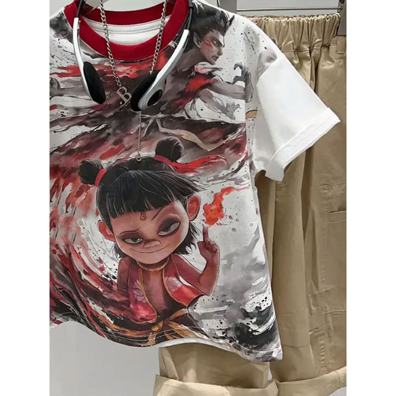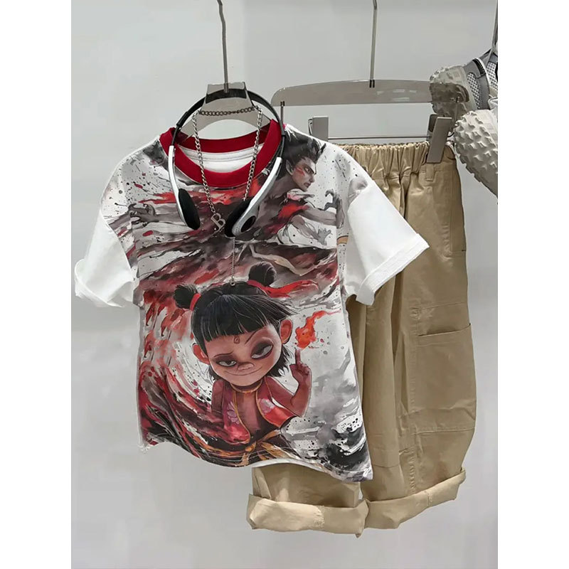 어떤 아동복 소년 반팔 티셔츠 여름 2025 새로운 온라인 인기 튀김 거리 소녀 바닥 셔츠 톱 조수 5스토어 가기