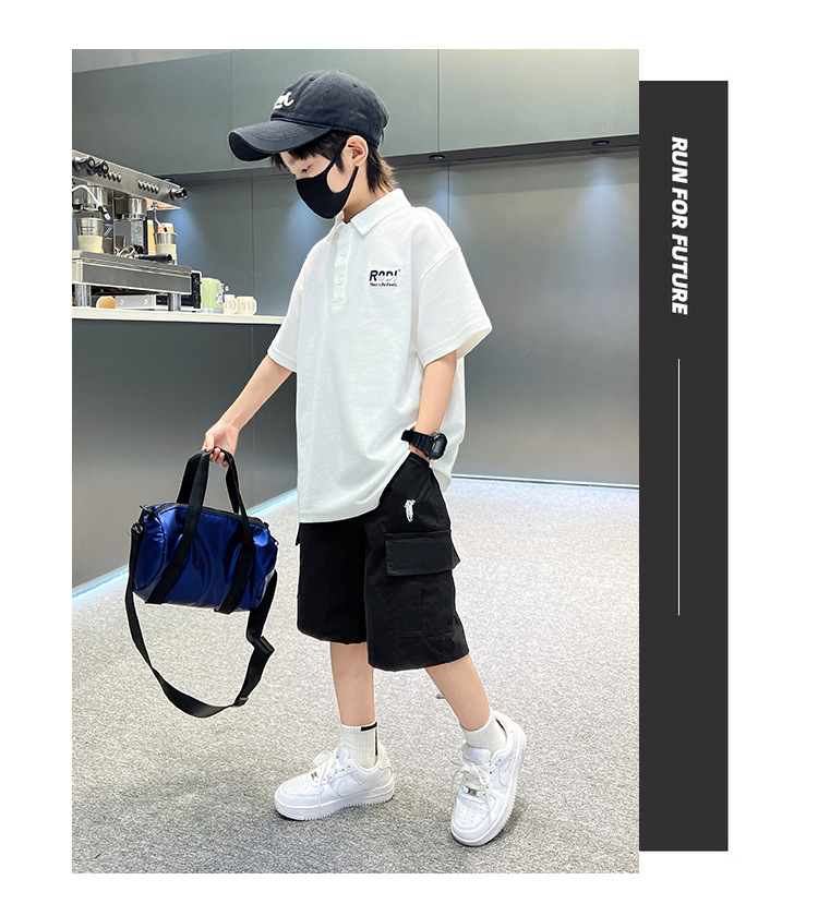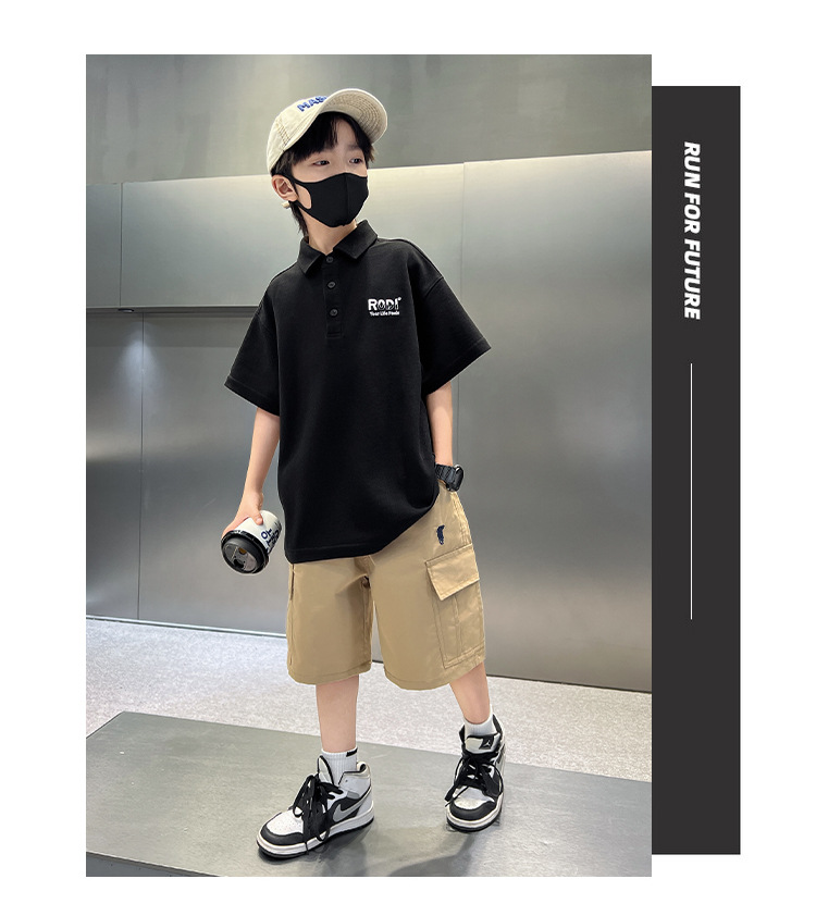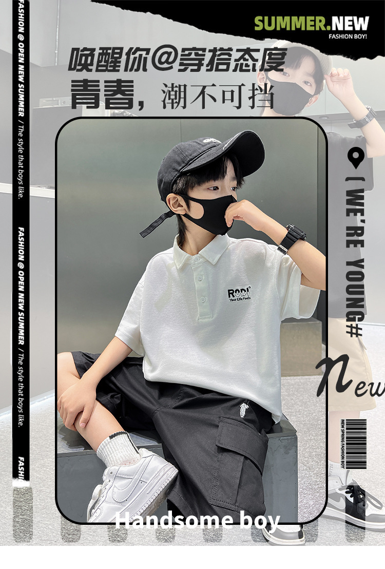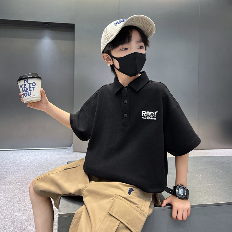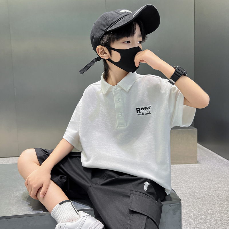 남학생 폴로 셔츠 반팔 티셔츠 여름 세트 2025 년 신종 잘 생긴 소년 톱큰아이들 여름 반소매