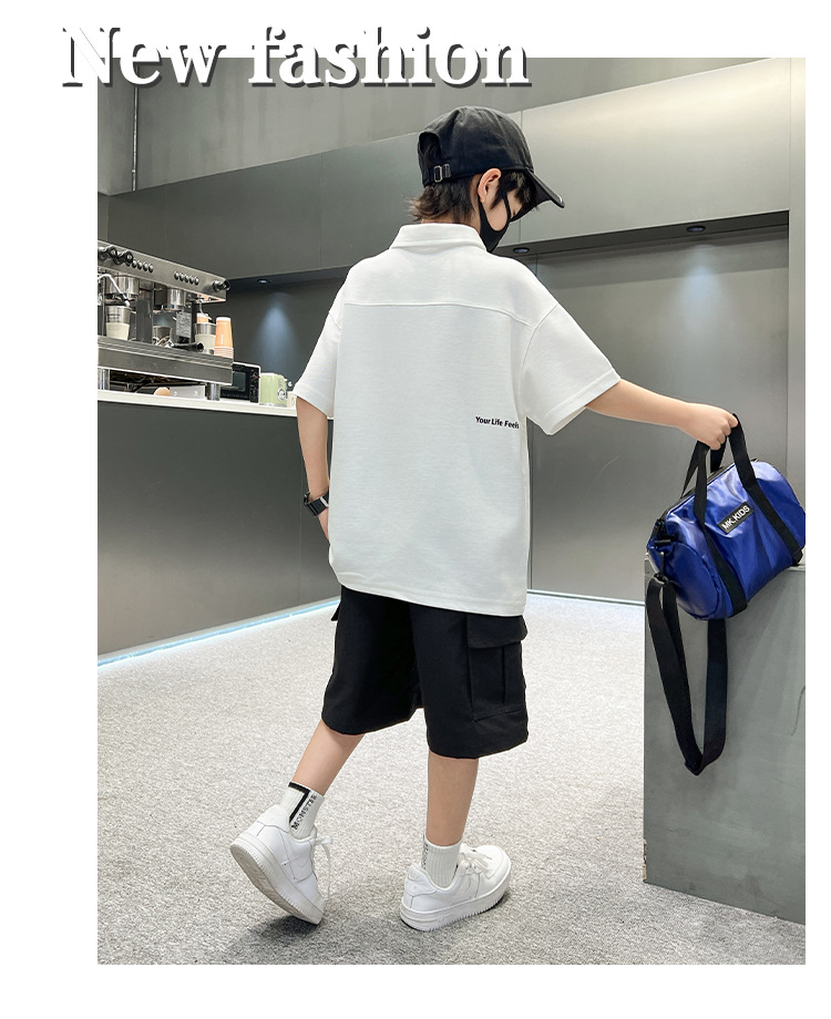 남학생 폴로 셔츠 반팔 티셔츠 여름 세트 2025 년 신종 잘 생긴 소년 톱큰아이들 여름 반소매스토어 가기