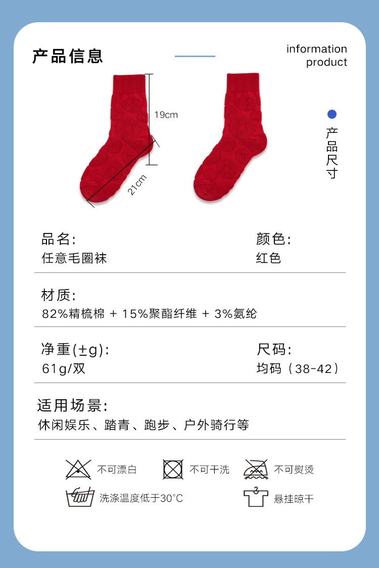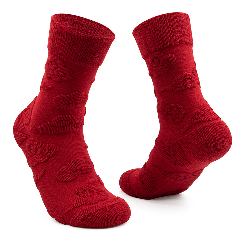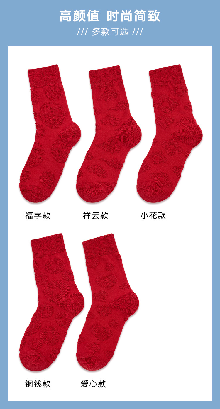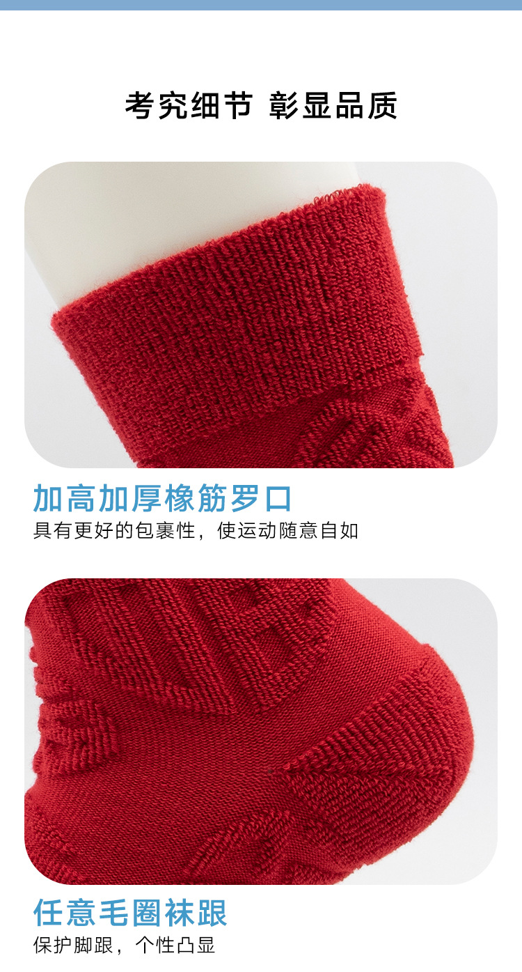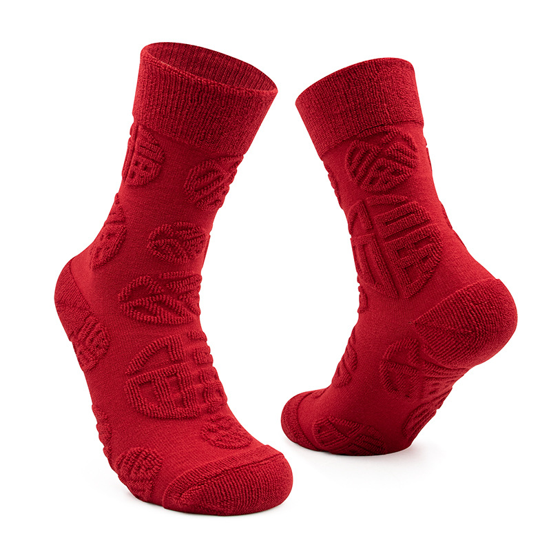 중국 전통의 해를 맞아 남성용 빨간색 양말, 커플을 위한 스포츠 종아리 중간 면 양말, 결혼식 양말, 축복의 단어가 있는 모든 테리 양말