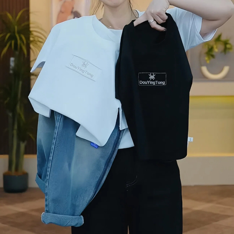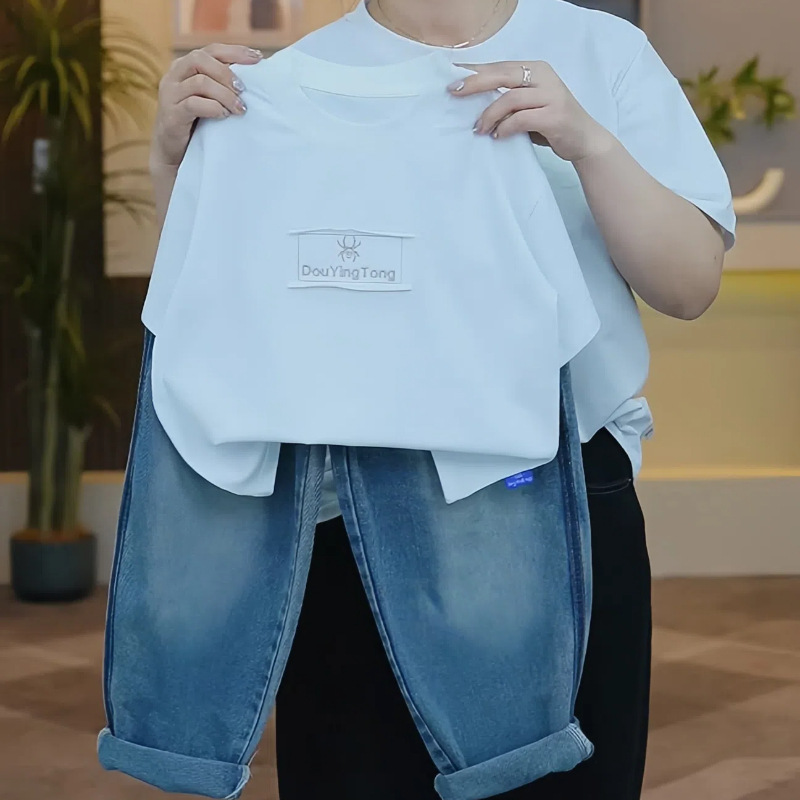 어린이 면화 자수 픽 티셔츠 남학생 여름 올 매치 티셔츠 아기의 여름 반소매 트렌디 티셔츠스토어 가기