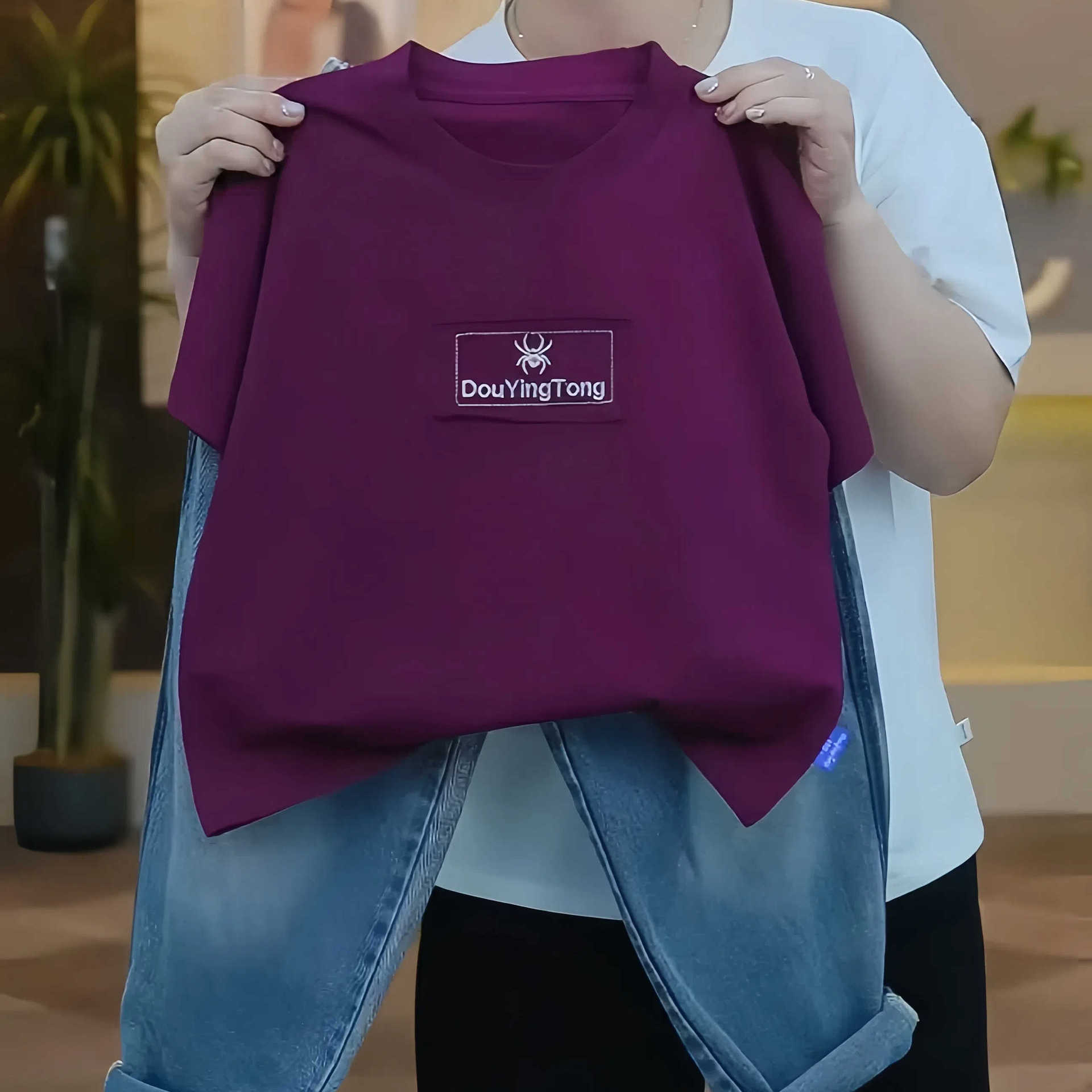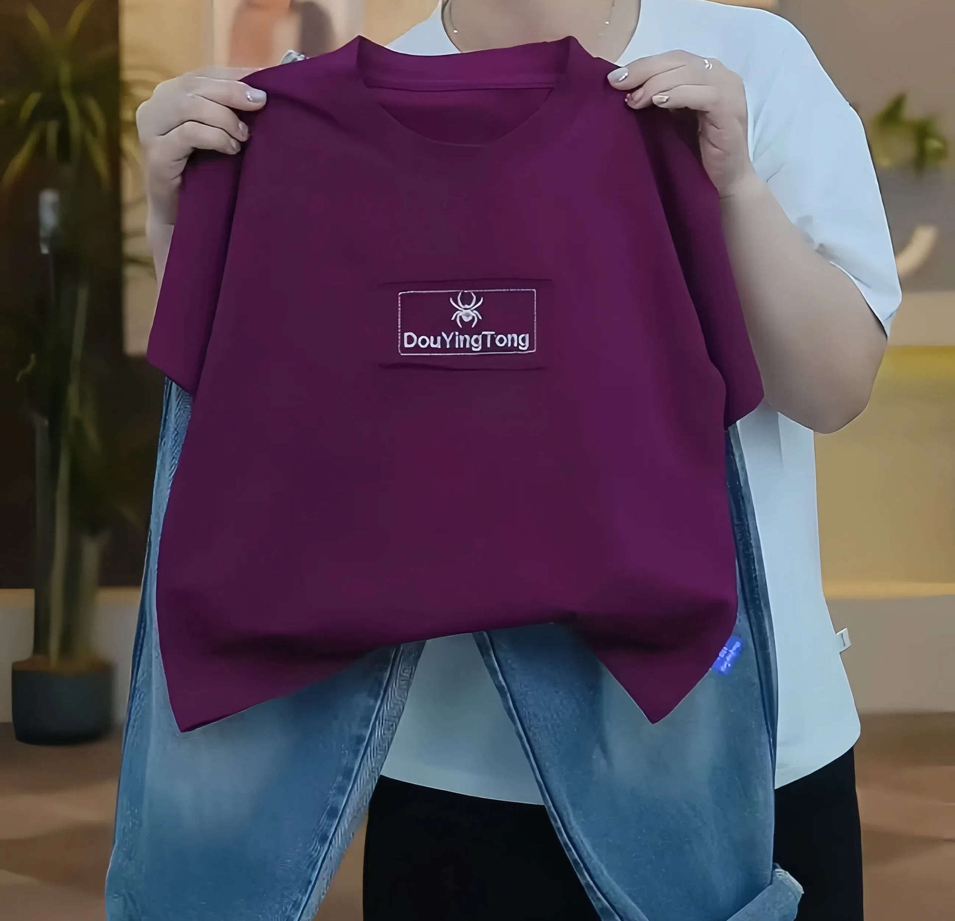 • DYT 자수 티셔츠-버건디