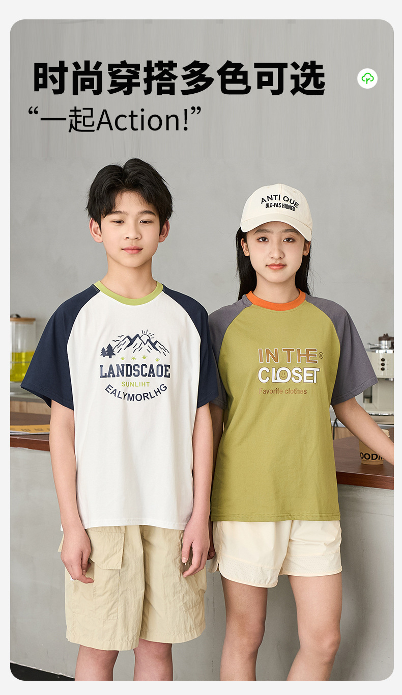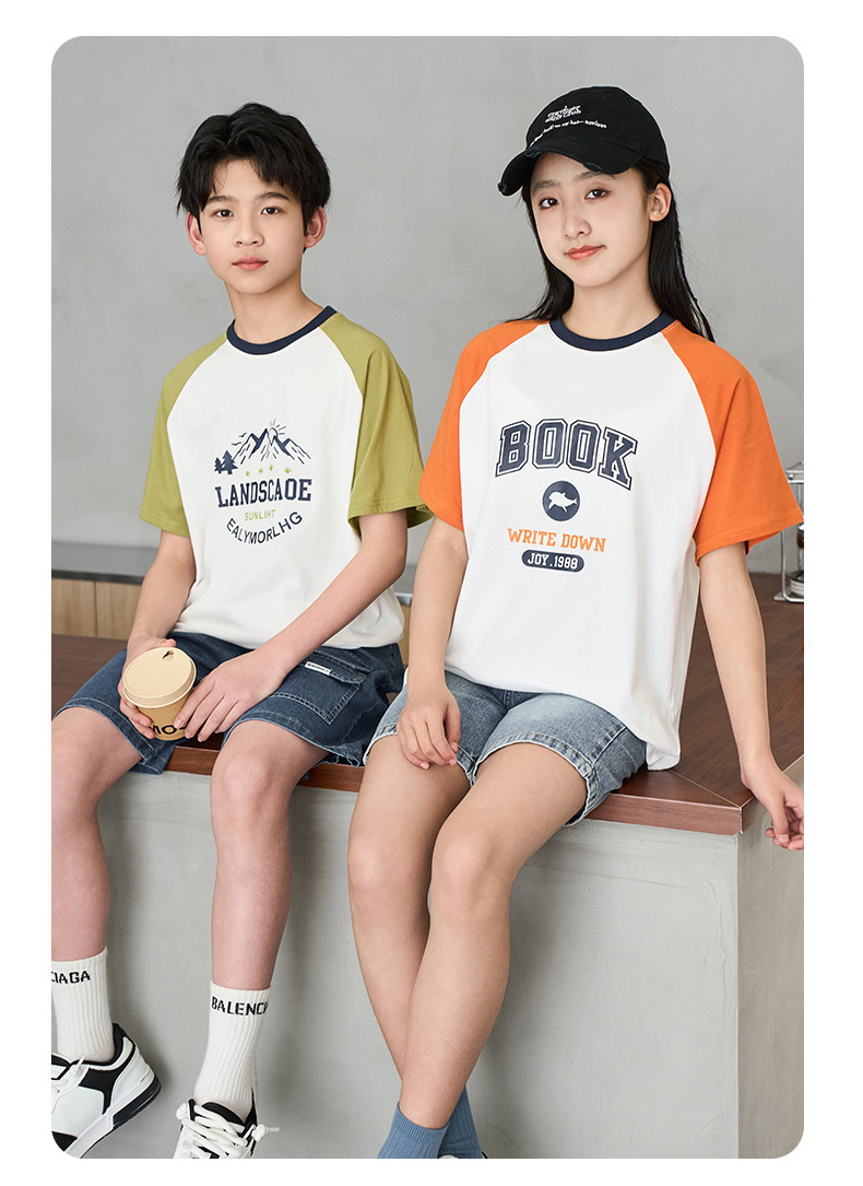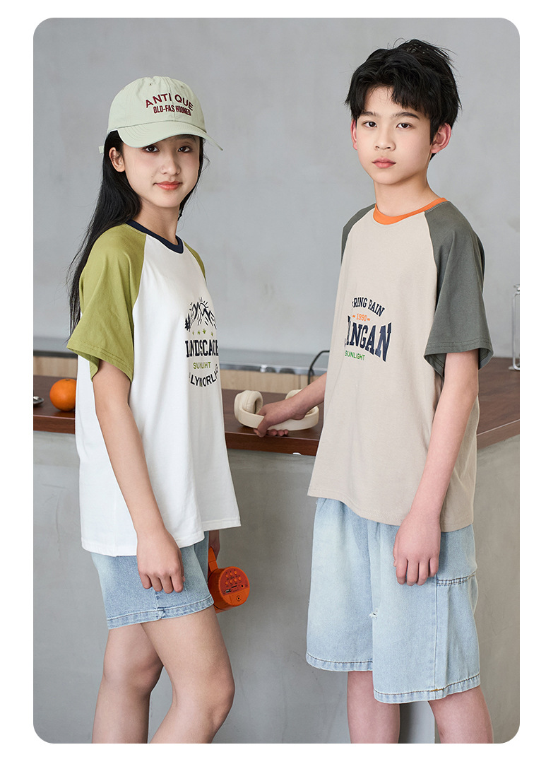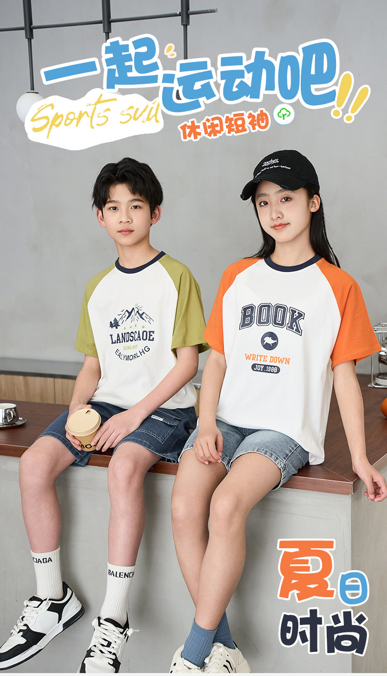 남학생 반소매 티셔츠 어린이 여름 원피스 대형 아동베이스 탑 걸스 티셔츠 '반소매 유행 아동복'스토어 가기