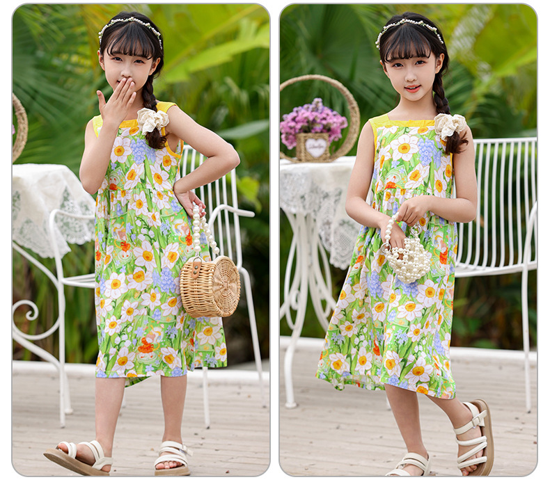 어린이 면 실크 잠옷 홈 의류 여름 얇은 여아 민소매 빈 스커트 새로운 스타일 소녀 슬링 스트랩 원피스스토어 가기