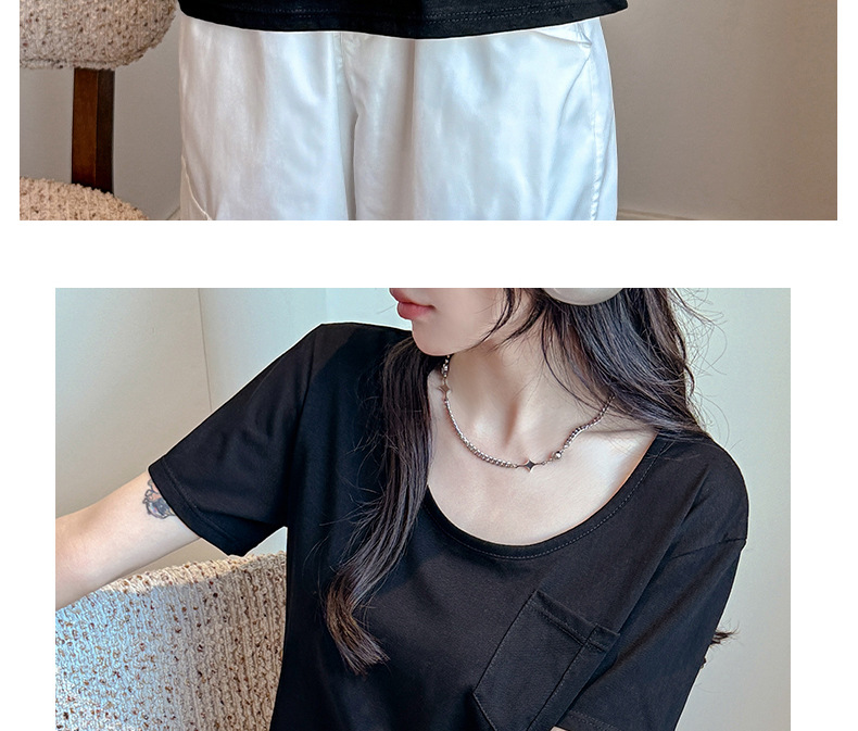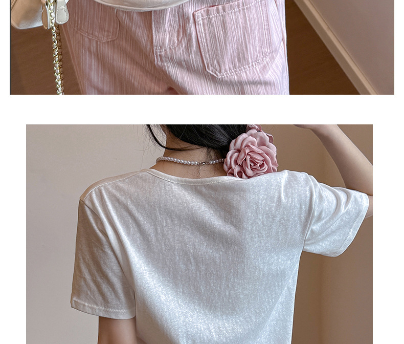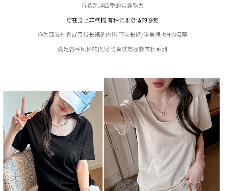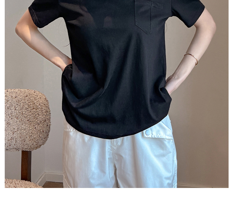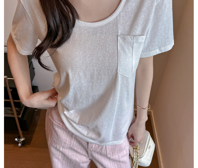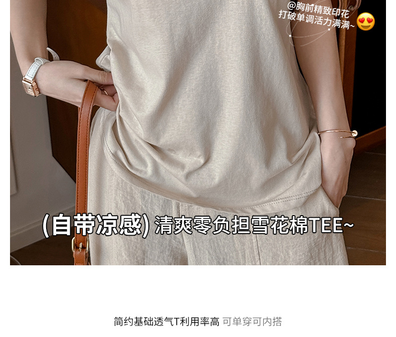 엄격한 선택 느슨한 슬리밍 게으른 스타일 탑 여성의 봄과 여름 2025 새로운 포켓 디자인 눈송이 면 반팔 티셔츠스토어 가기