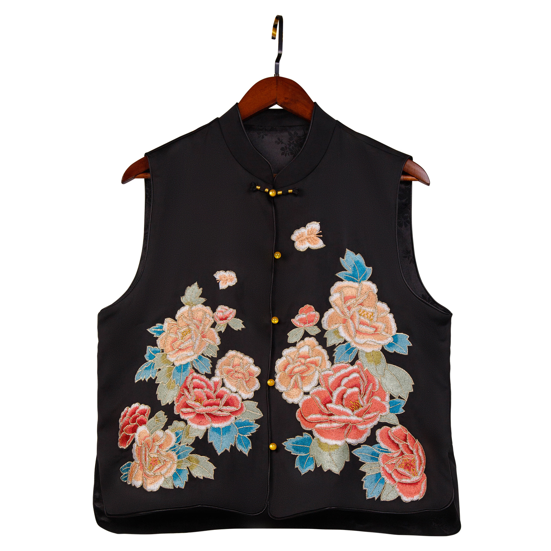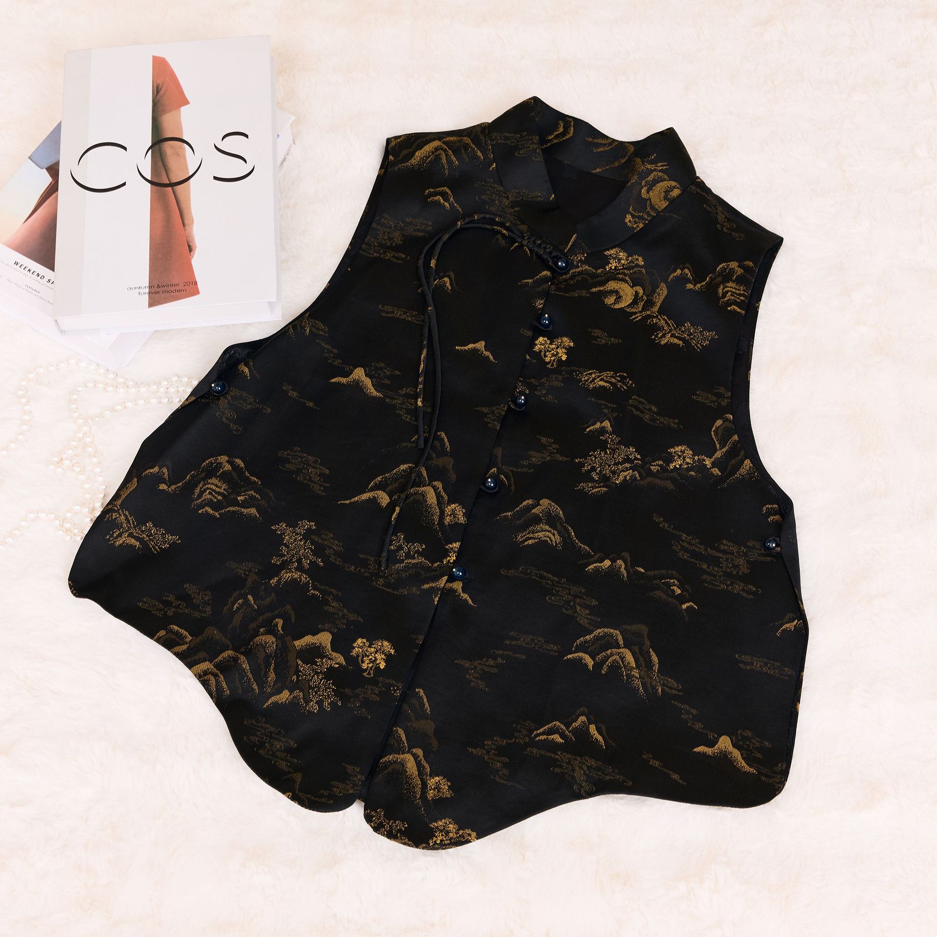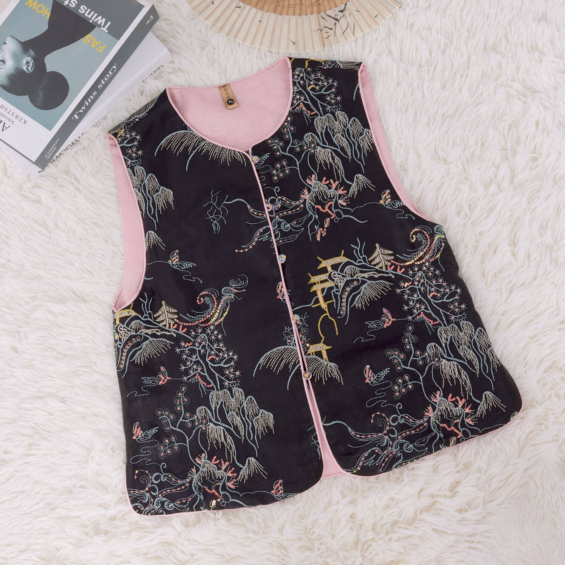 카디건 겉옷 신중국풍 민소매 조끼 여성용 단추 자수 레트로 여성 고급스러운 스탠드 칼라 코트 루즈핏스토어 가기