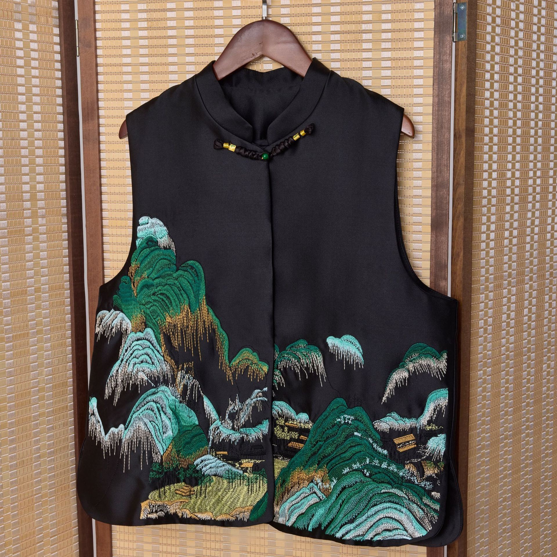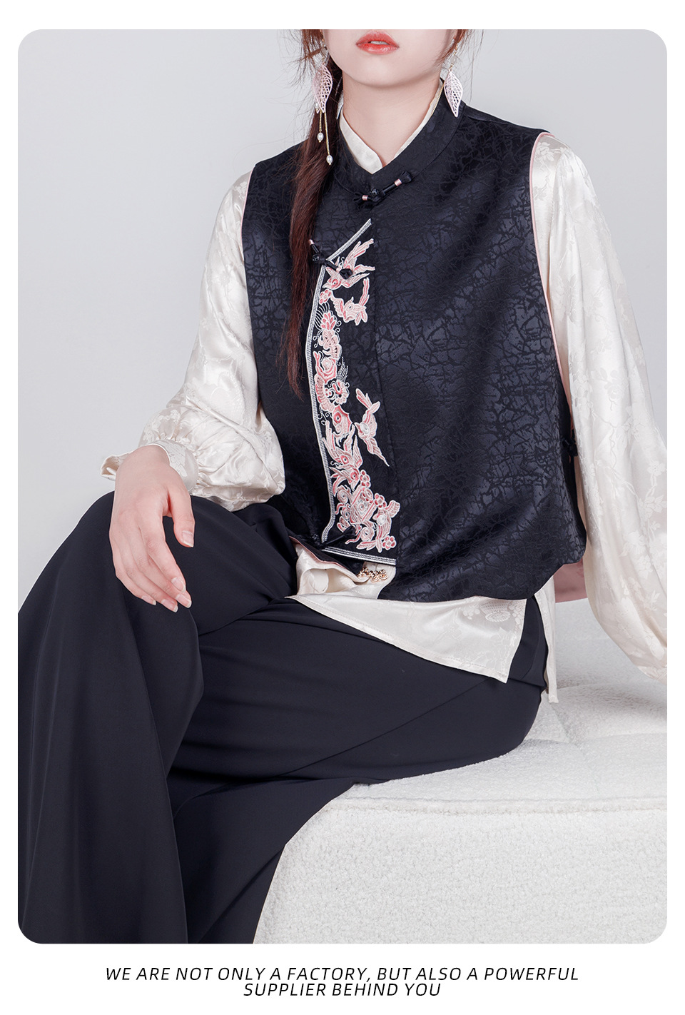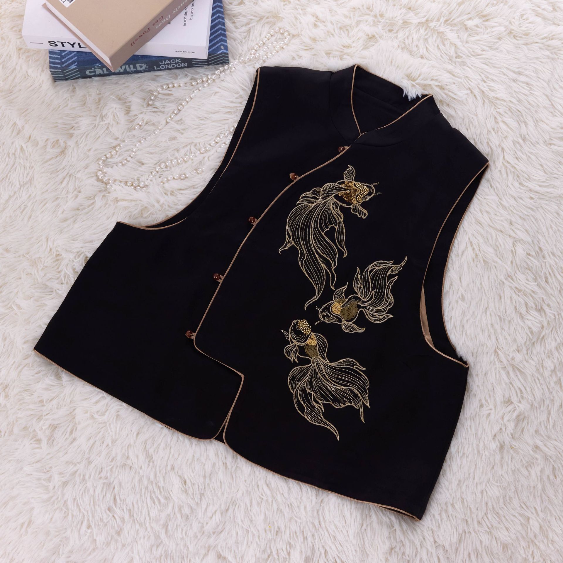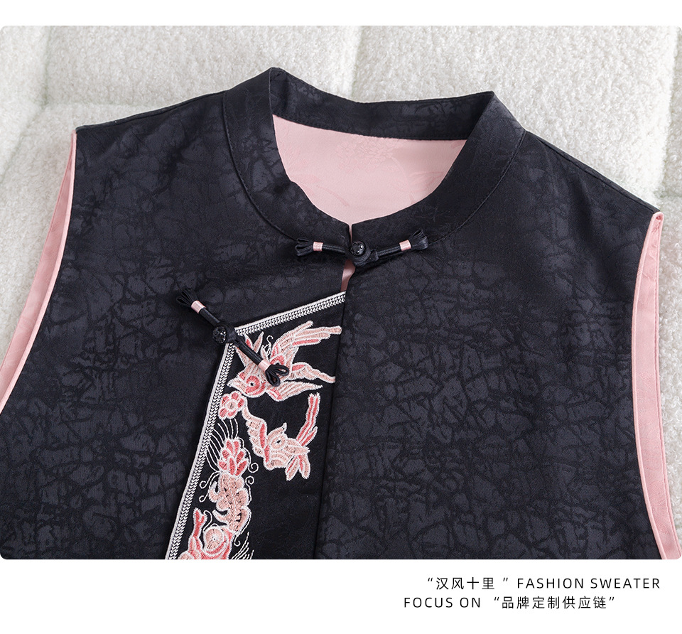 카디건 겉옷 신중국풍 민소매 조끼 여성용 단추 자수 레트로 여성 고급스러운 스탠드 칼라 코트 루즈핏