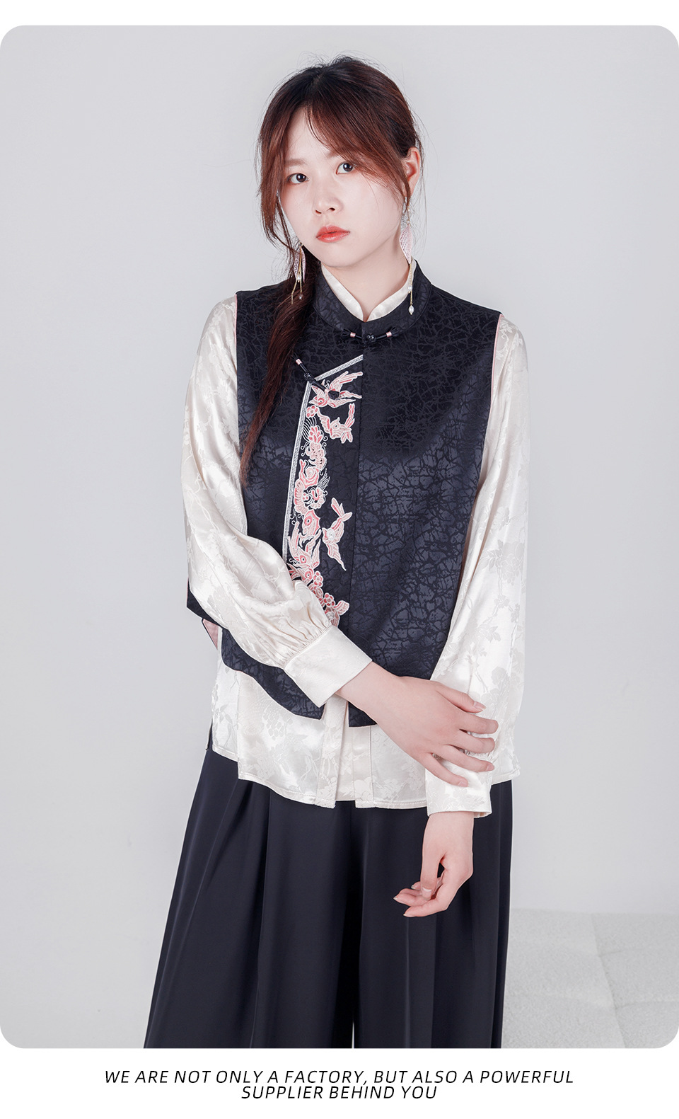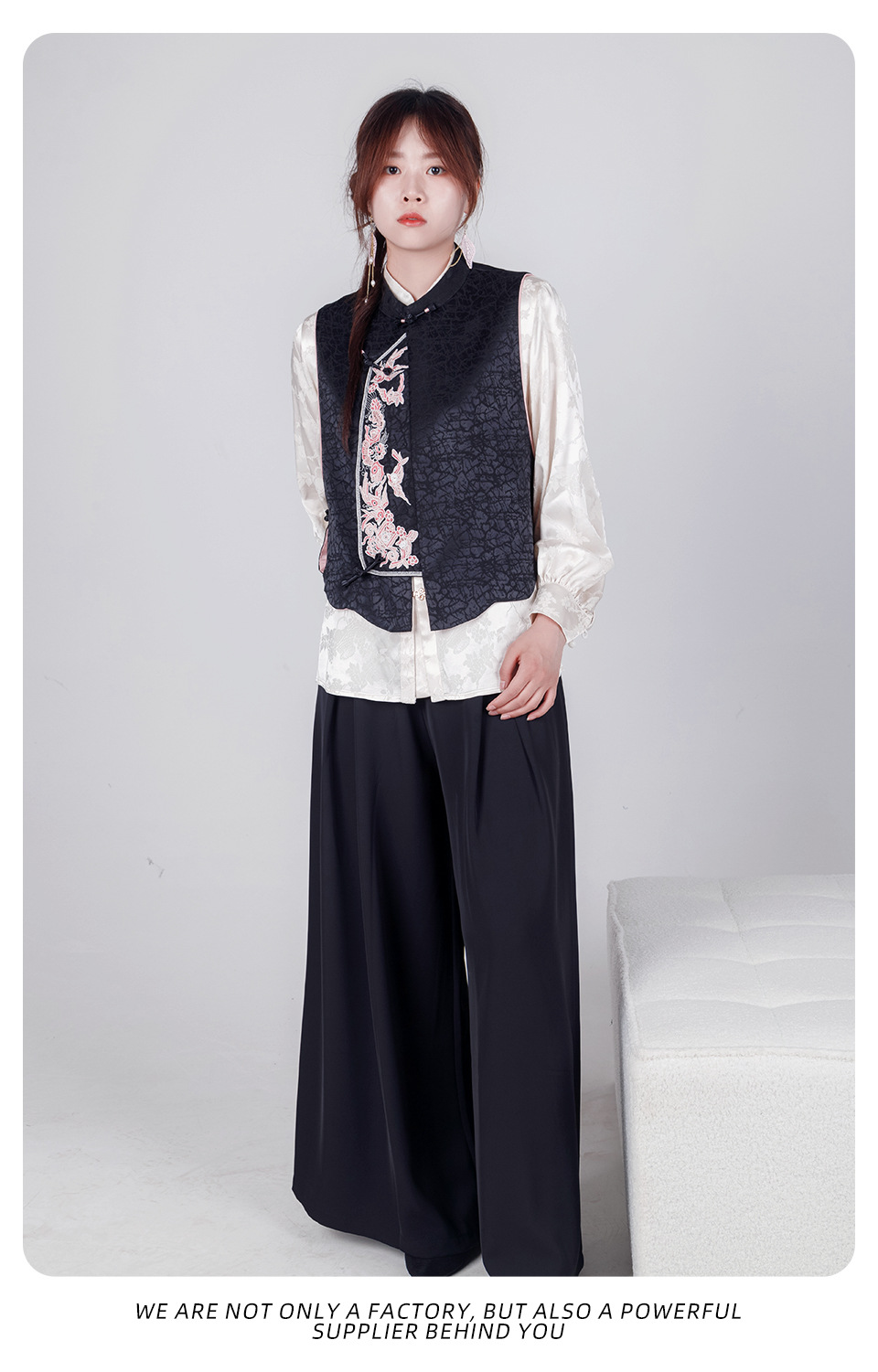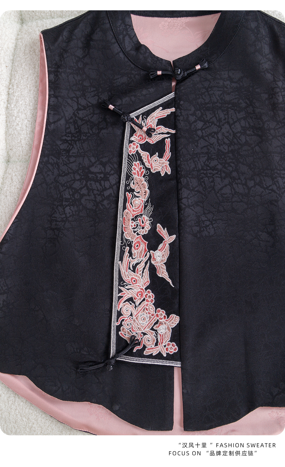 카디건 겉옷 신중국풍 민소매 조끼 여성용 단추 자수 레트로 여성 고급스러운 스탠드 칼라 코트 루즈핏