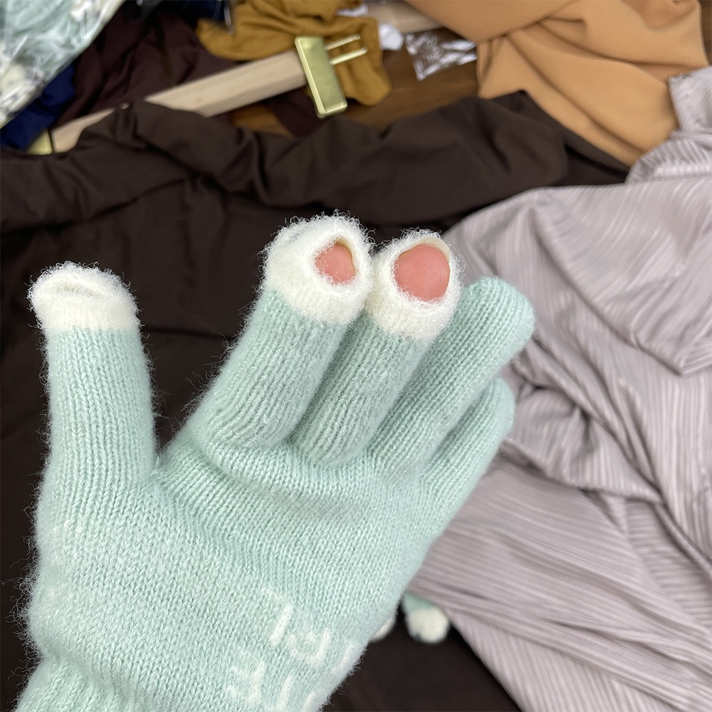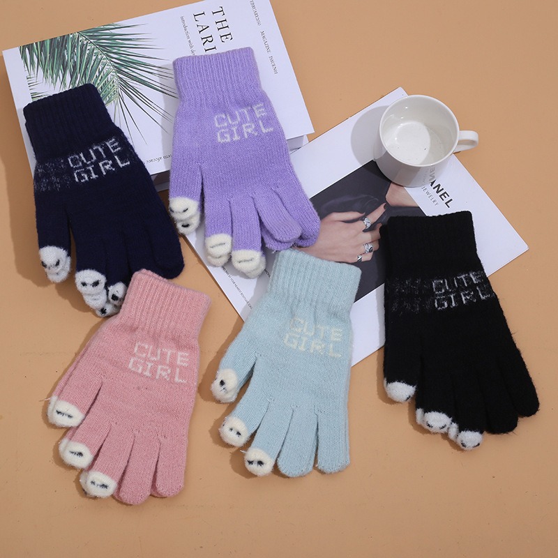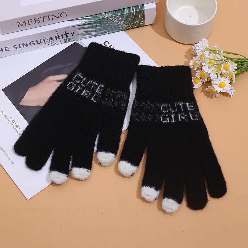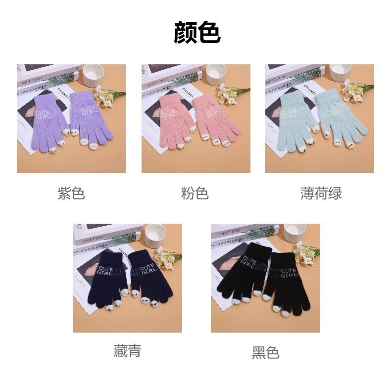 가을과 겨울 터치 스크린 귀여운 사이클링 학생 클래스 쓰기 장갑 여성을위한 새로운 Doudou 물고기 플러시 따뜻한 장갑