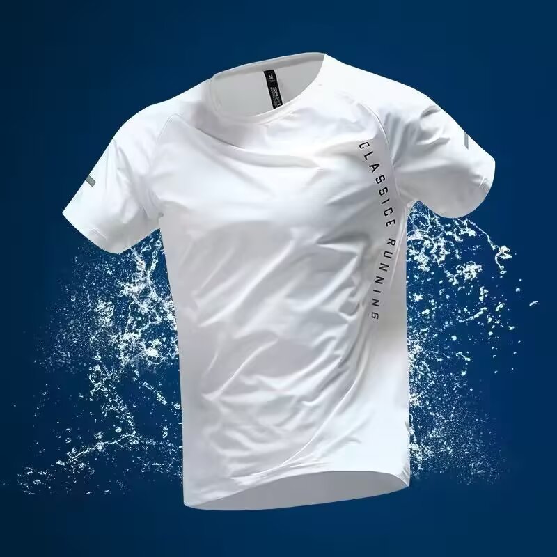 마라톤 달리기 남자 여름 아이스 실크 짧은 소매 스포츠 육상 훈련 피트니스 의류 대외 무역 국경 도매스토어 가기