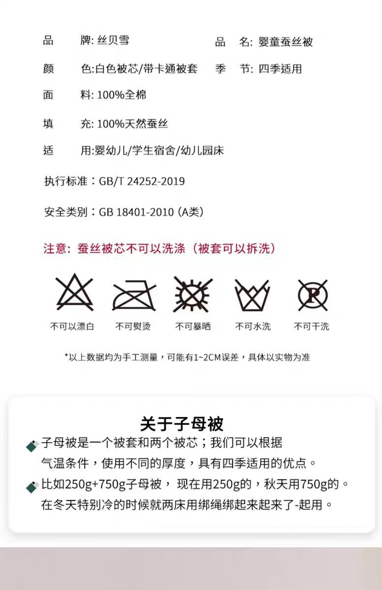 • 120*150CM 1-6세 어린이 실크 이불