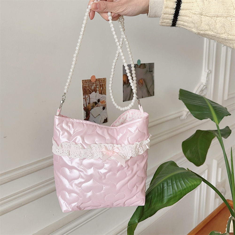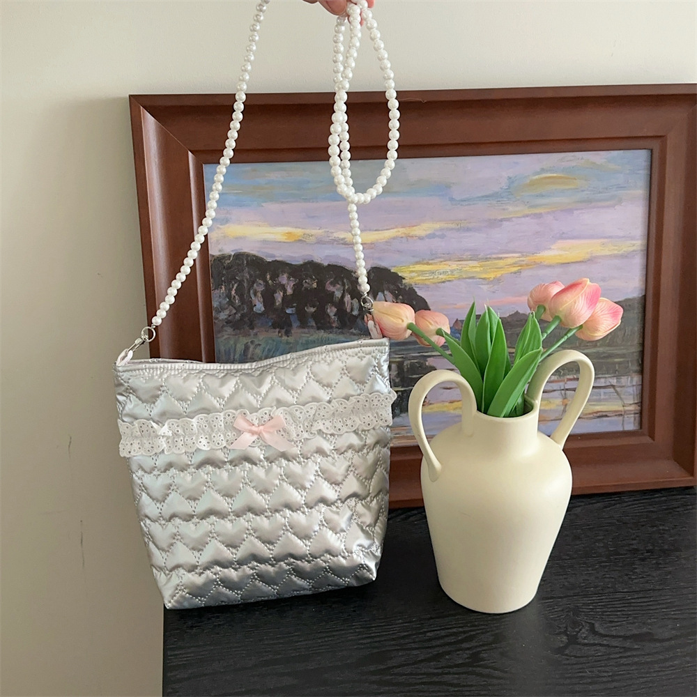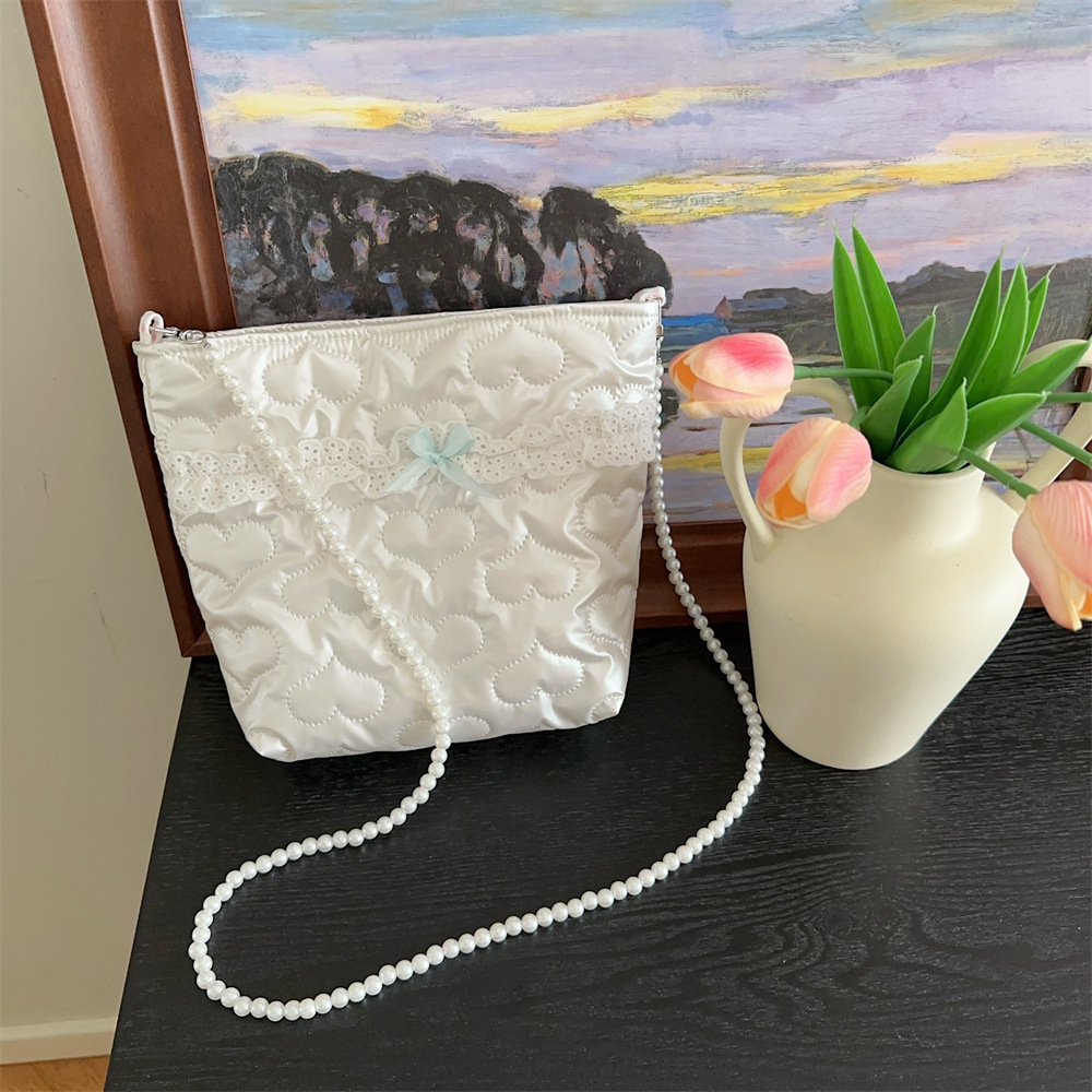 5392 pu 퀼트 새로운 스타일 보우 크로스 바디 백 휴대 전화 가방 진주 체인 휴대용 화장품 가방 보관 가방