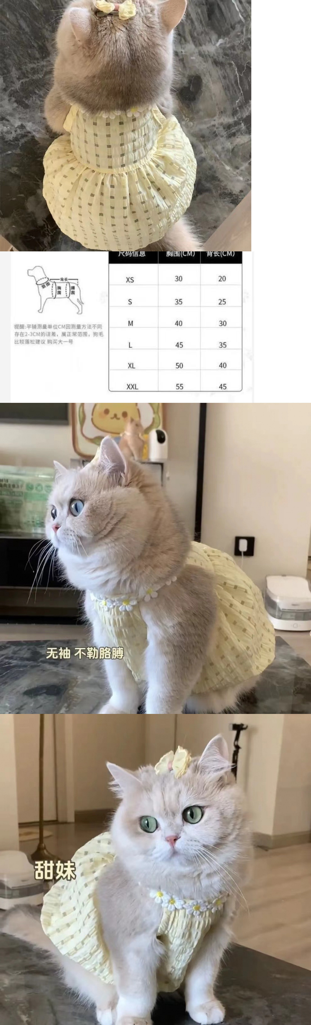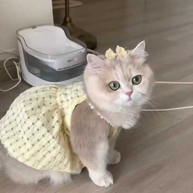 고양이 여름옷, 작은 치마, 털 방지, 귀여운 인 골드 그라데이션 래그돌 고양이, 브리티시 쇼트헤어 여름 서스펜더 스커트스토어 가기