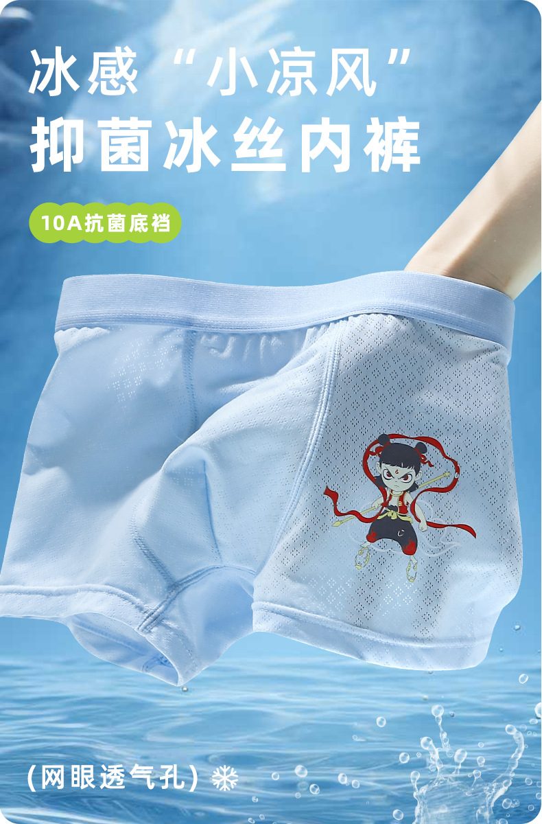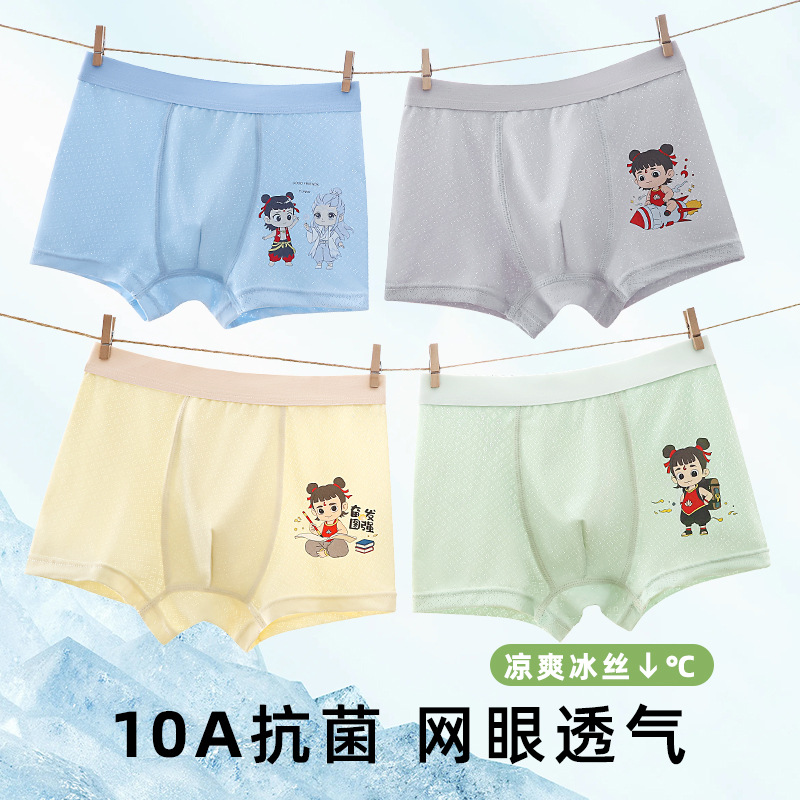 어린이 얼음 실크 속옷 소년 여름 얇은 복서 중형 및 대형 어린이 소년 반바지 아기 복서스토어 가기