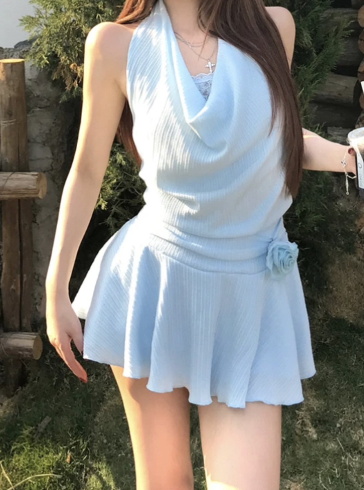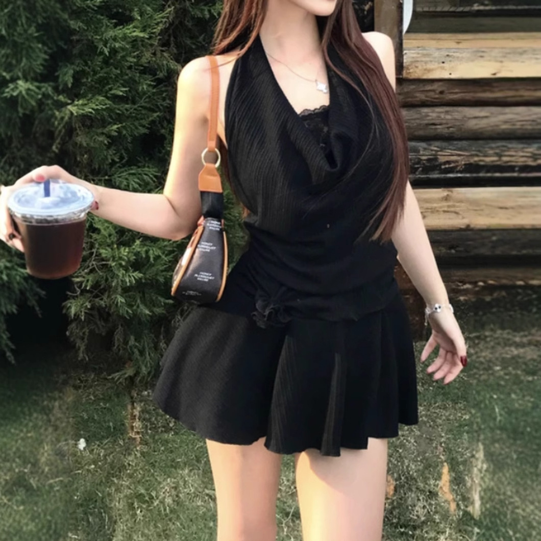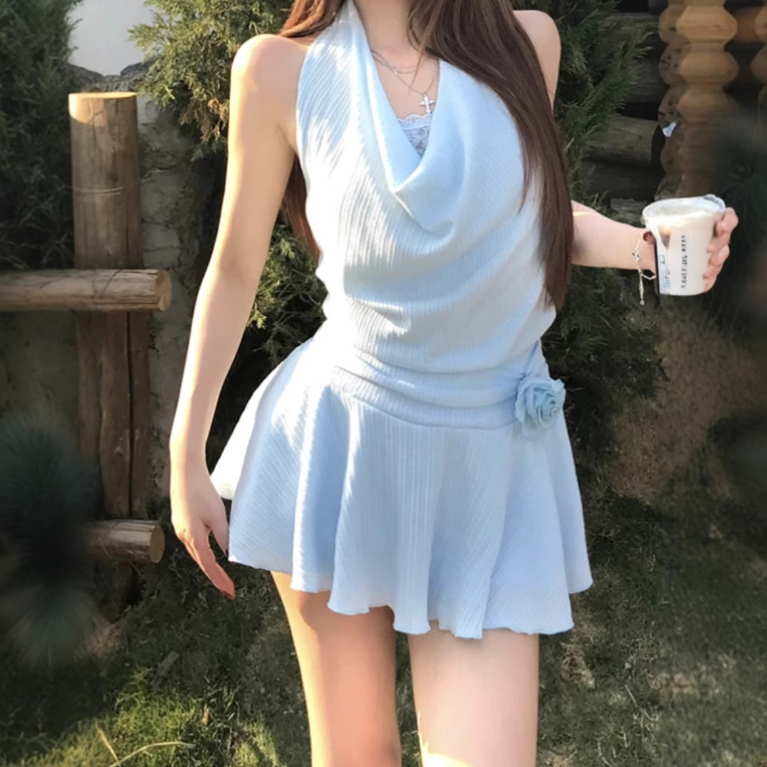 목 원피스 봄과 여름 슬림 디자인 센스 틈새 부드러운 편안한 높은 허리 슬리밍 순수한 욕망 섹시한 스파이스 소녀스토어 가기