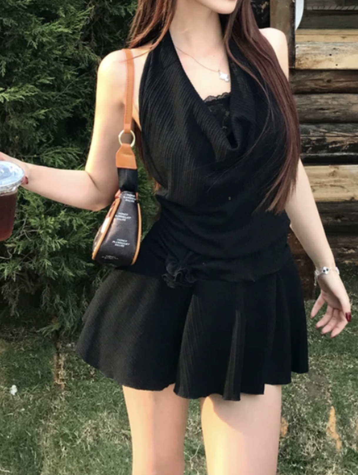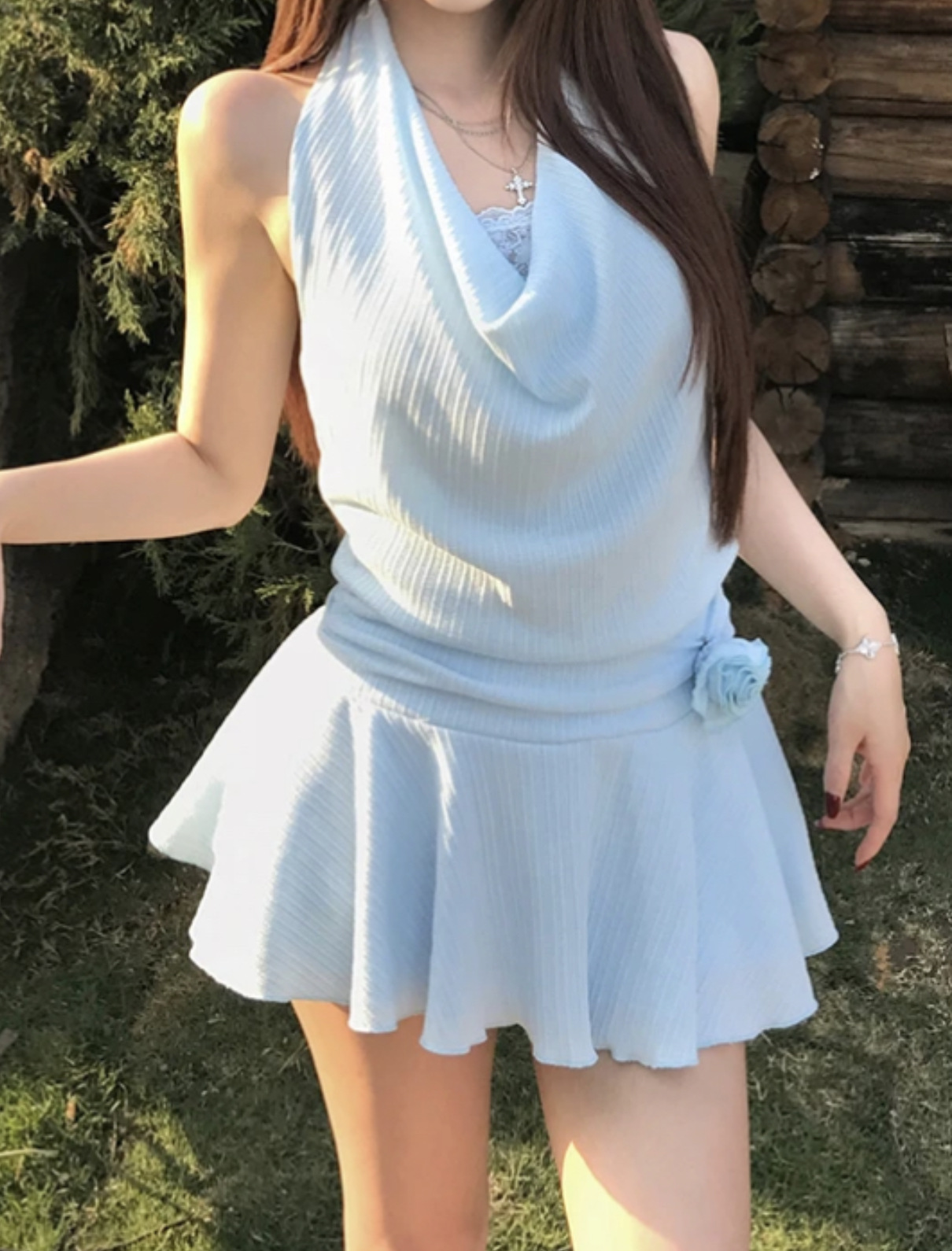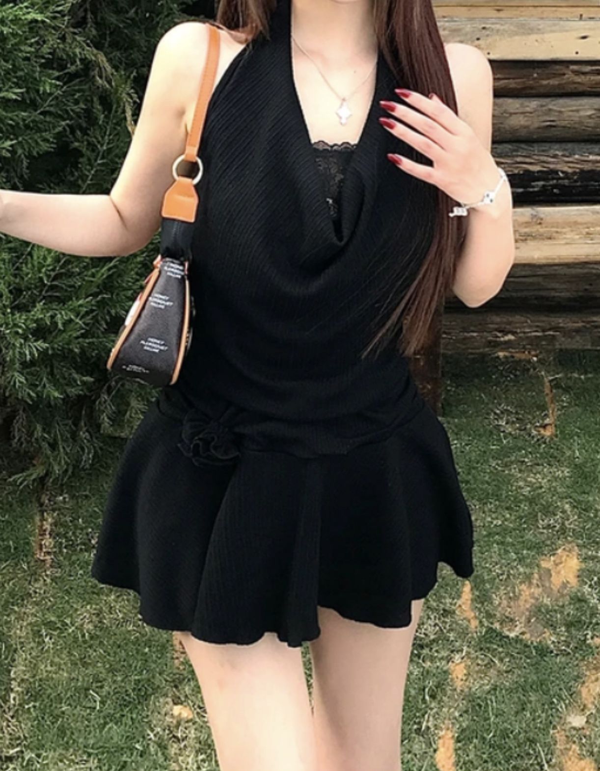 목 원피스 봄과 여름 슬림 디자인 센스 틈새 부드러운 편안한 높은 허리 슬리밍 순수한 욕망 섹시한 스파이스 소녀스토어 가기