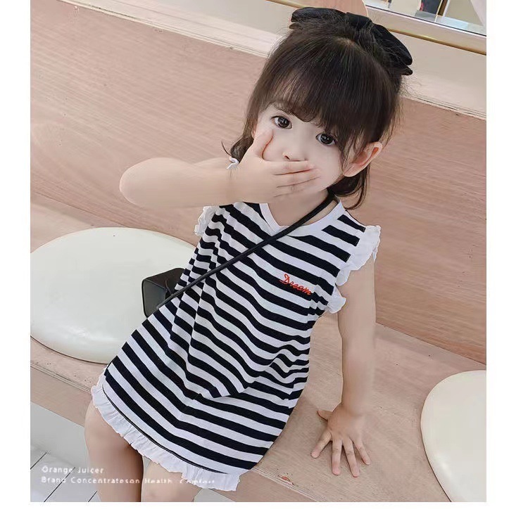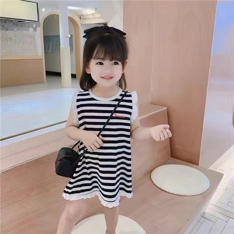 소녀의 A 자형 원피스 소녀의 빅 원피스 여름 원피스 귀여운 서양 스타일 1-6 세 소녀의 공주 스타일 얇은 스커트