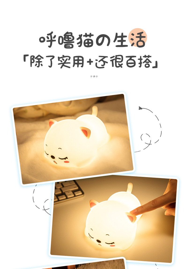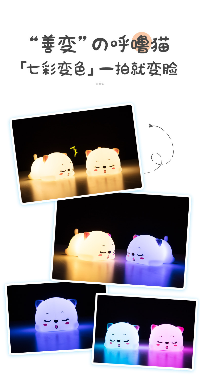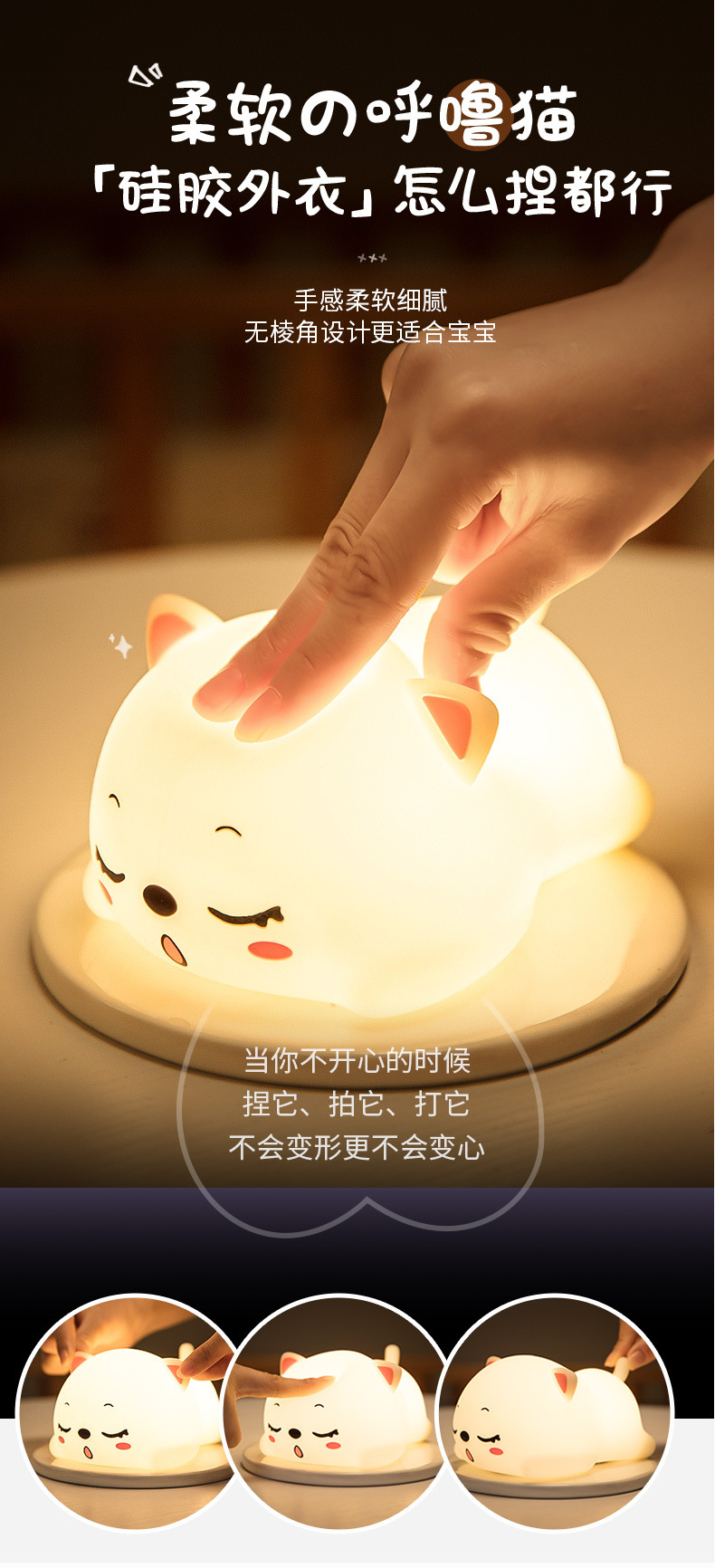 코골이 고양이 나이트 라이트 기숙사 침대 사이드 고급 분위기 빛 만화 실리콘 팻 라이트 소녀 선물 작은 테이블 램프스토어 가기