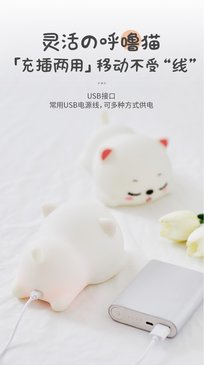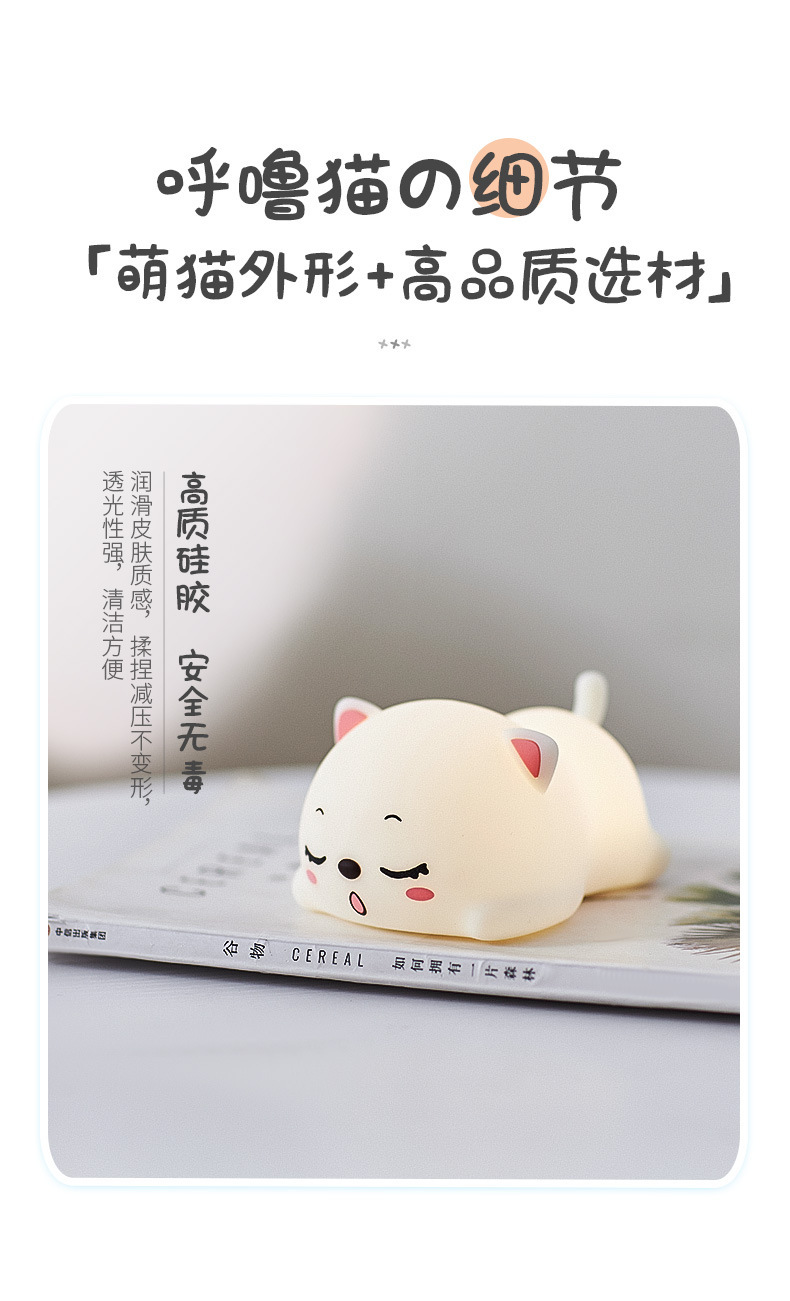 코골이 고양이 나이트 라이트 기숙사 침대 사이드 고급 분위기 빛 만화 실리콘 팻 라이트 소녀 선물 작은 테이블 램프