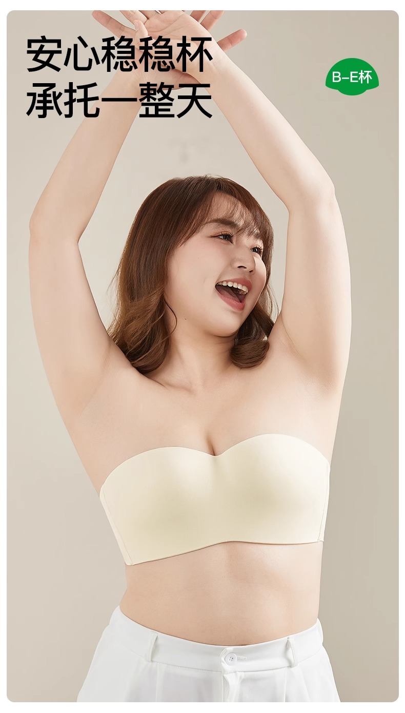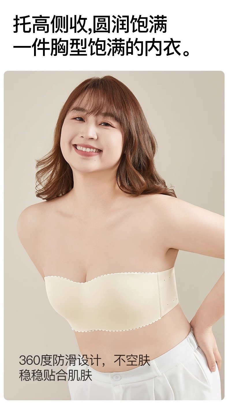 샤오나가 추천하는 구지아 동일 스타일의 안정적인 컵 브라, 큰 가슴과 아름다운 등 라인을 위한 스트랩리스 브라, 미끄럼 방지, 푸쉬업, 무봉제 브라