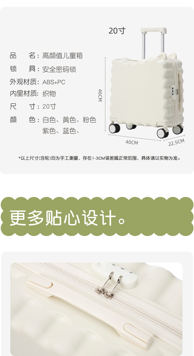 어린이 수하물 케이스 2025 새로운 장착 가능한 소년과 소녀 Kabi Bala 20 인치 트롤리 여행 코드 가죽 케이스