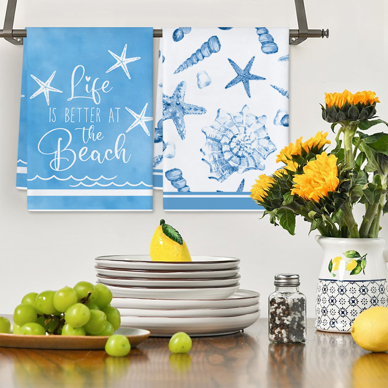 국경 독점 지중해 스타일 주방 접시 타월 인쇄 식탁 장식 축제 오션 시리즈 흡수 수건