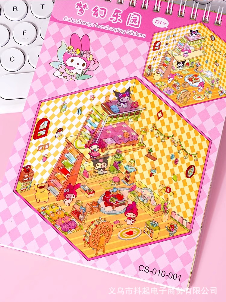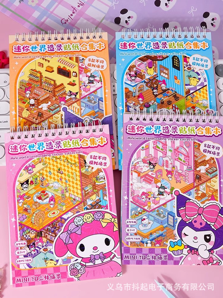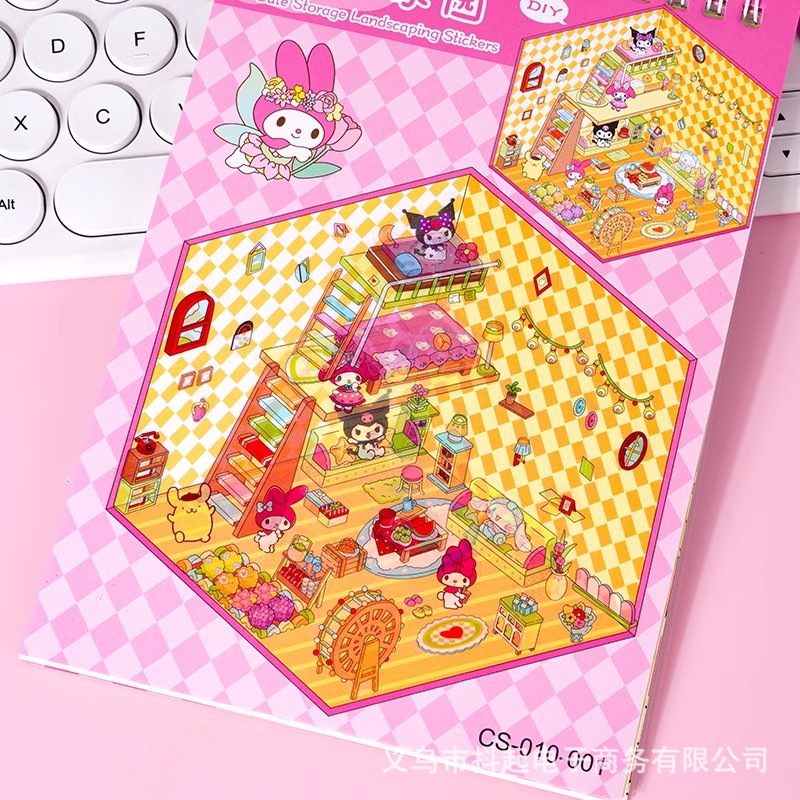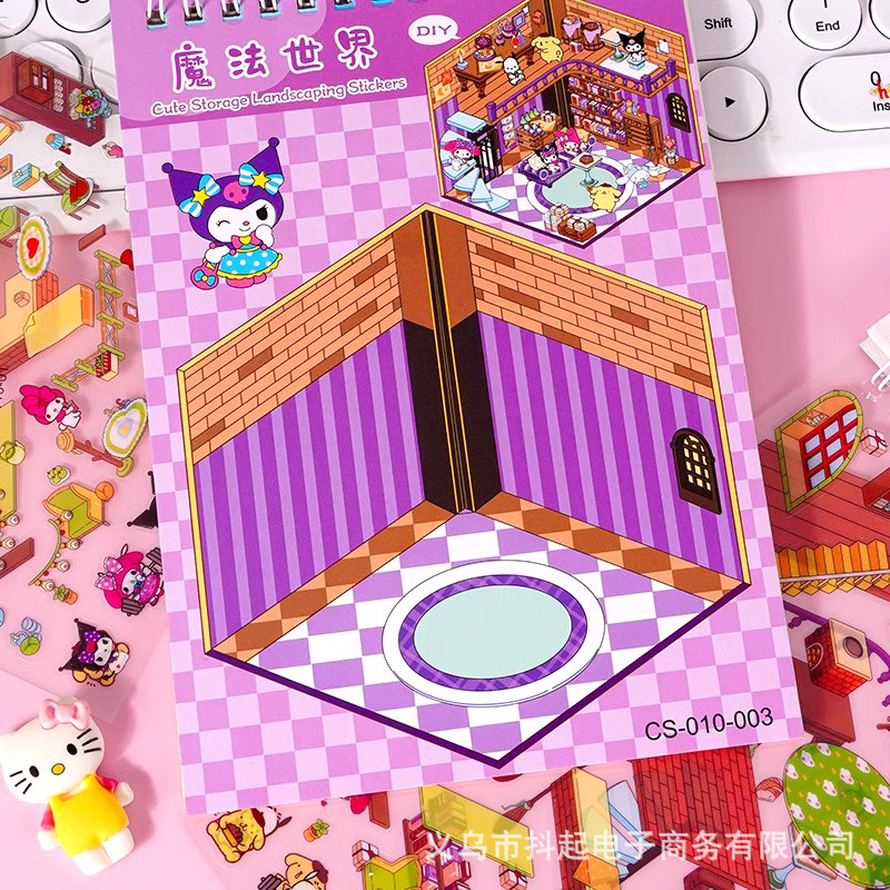 산리오 미니어처 만화 조경 스티커 3D 스택 3 차원 오두막 소녀 어린이 diy 손 계정 장식 창조적 인스토어 가기