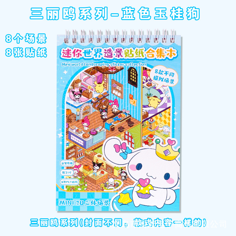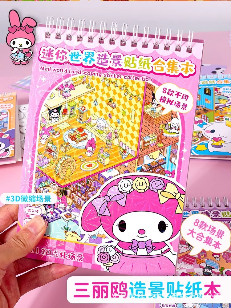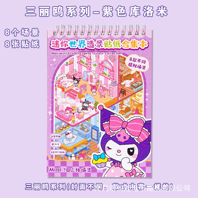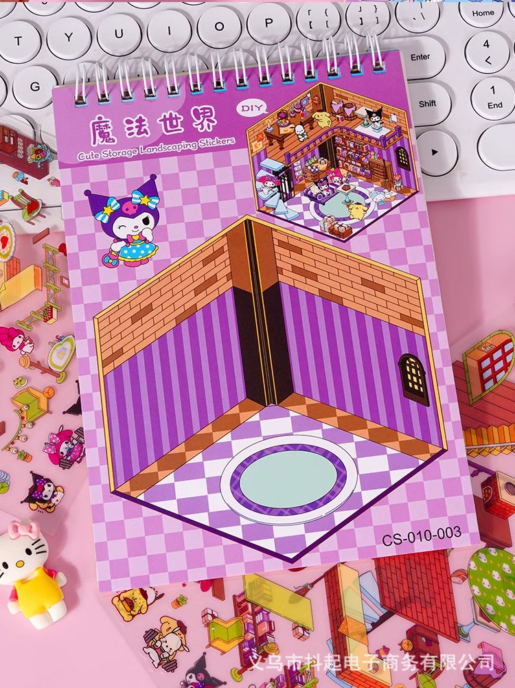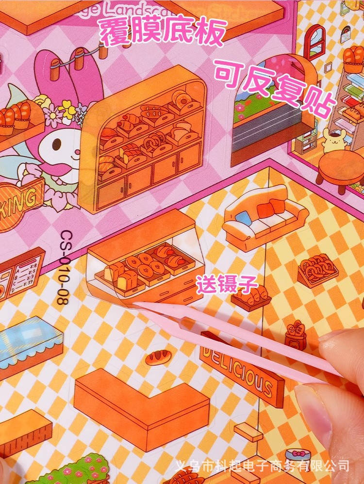 산리오 미니어처 만화 조경 스티커 3D 스택 3 차원 오두막 소녀 어린이 diy 손 계정 장식 창조적 인스토어 가기