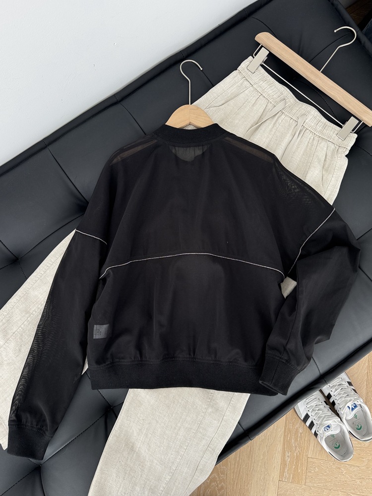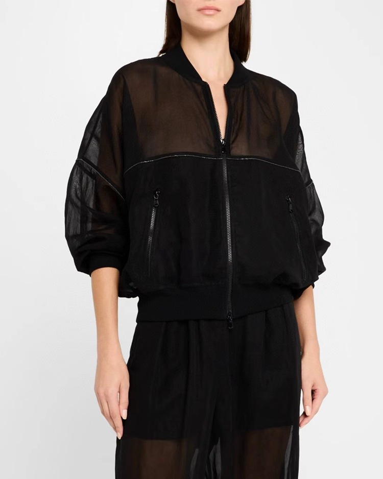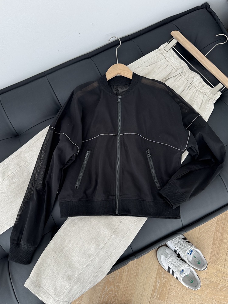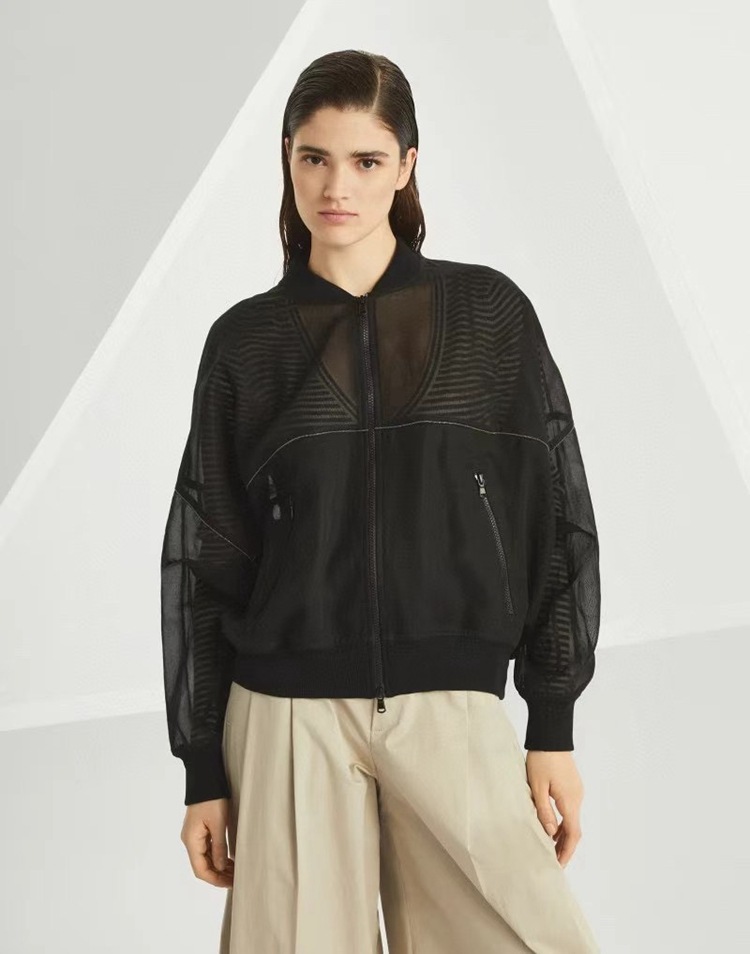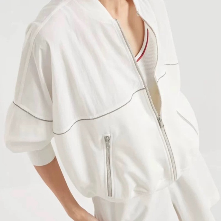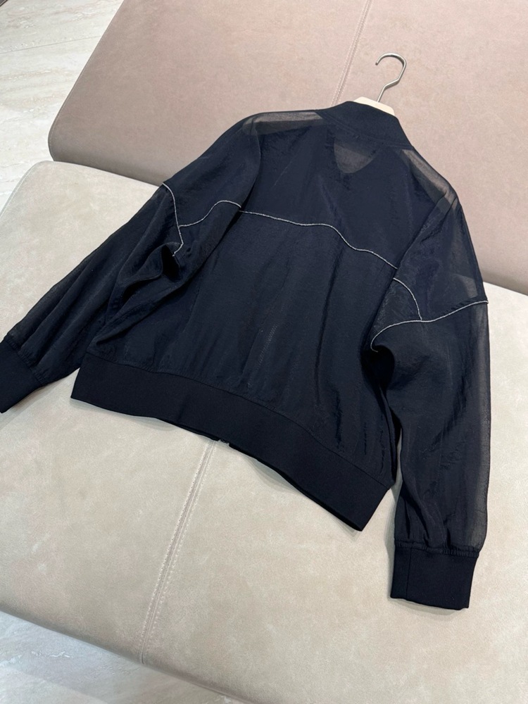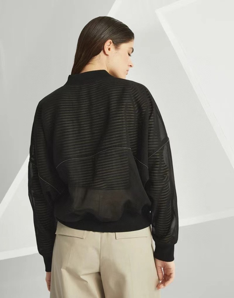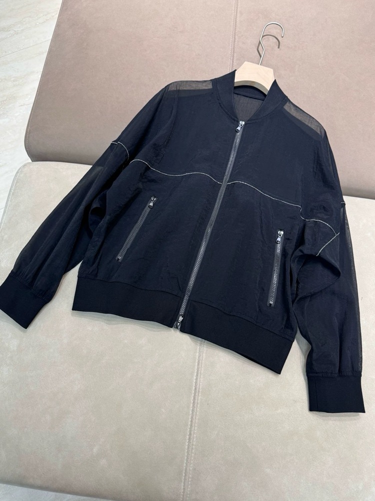고급 이탈리아 BC 스탠드 칼라 지퍼 수입 면 흑백 초박형 선 스크린 캐주얼 다용도 재킷 코트 여성용 탑