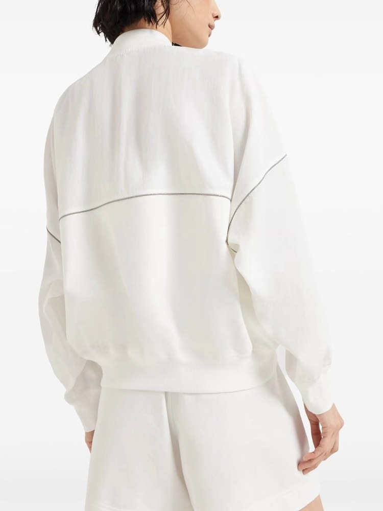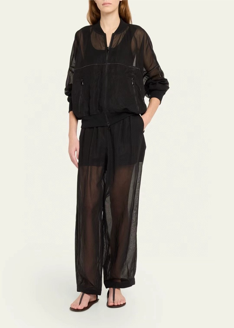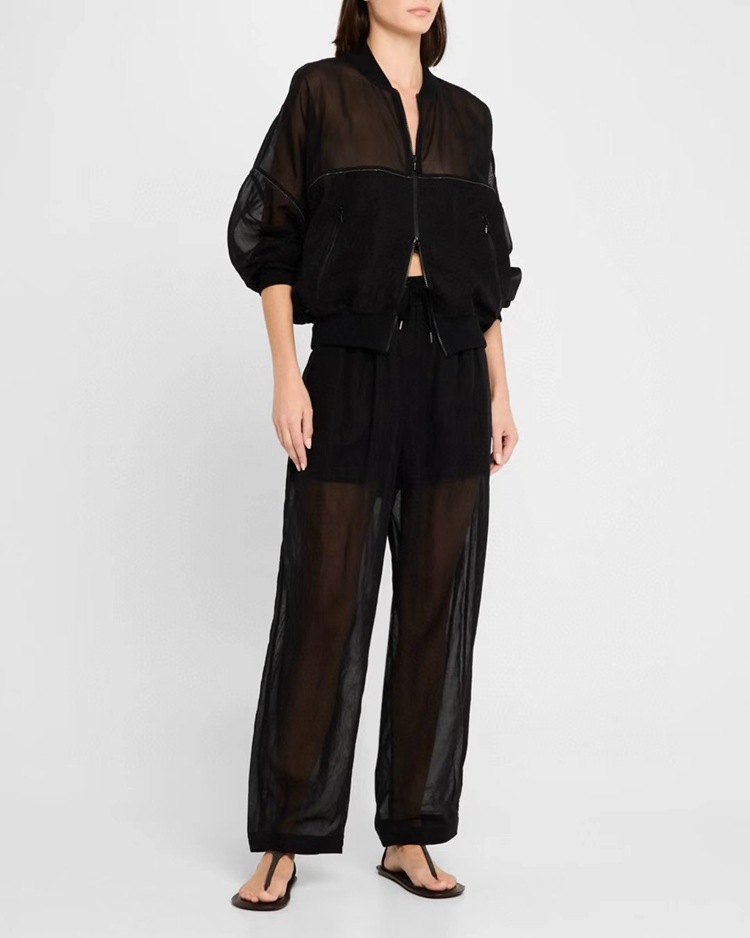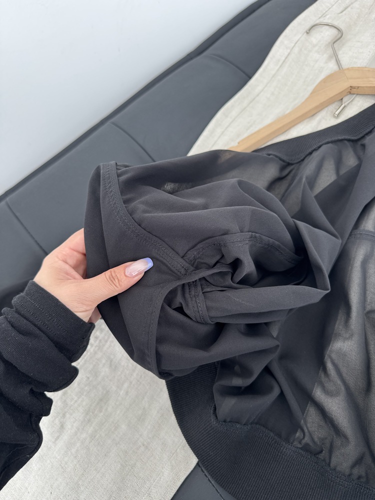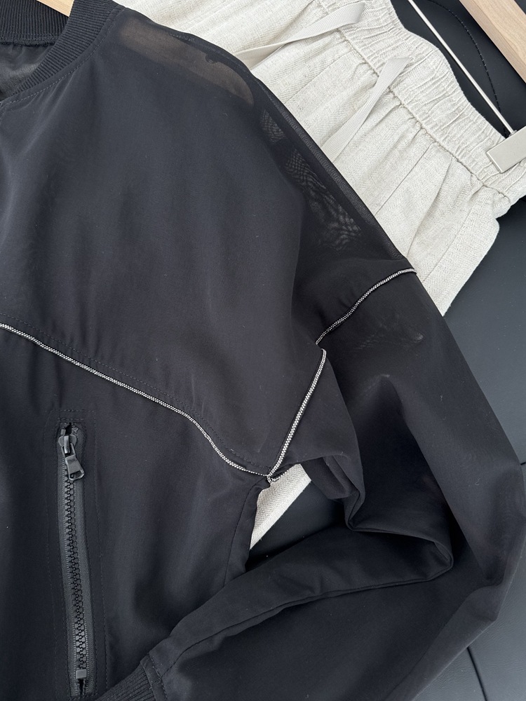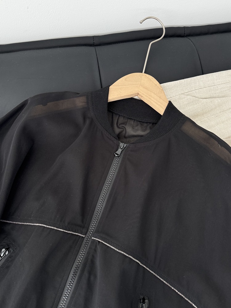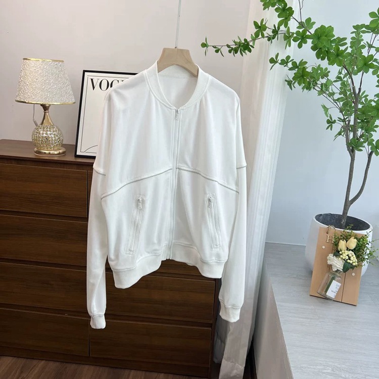 고급 이탈리아 BC 스탠드 칼라 지퍼 수입 면 흑백 초박형 선 스크린 캐주얼 다용도 재킷 코트 여성용 탑