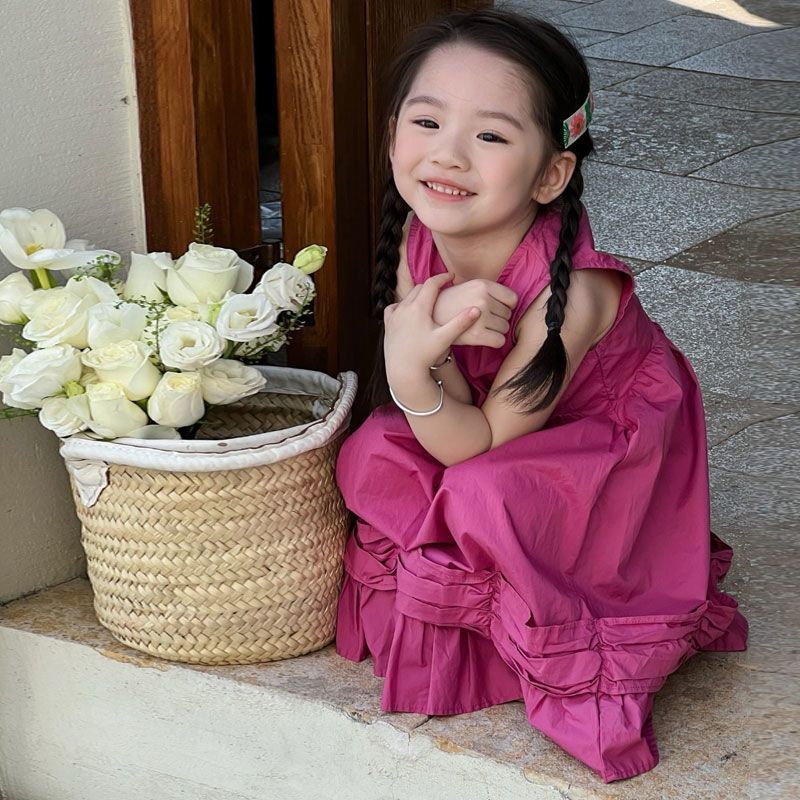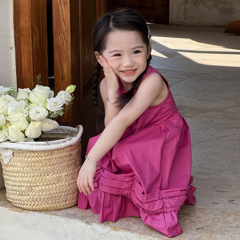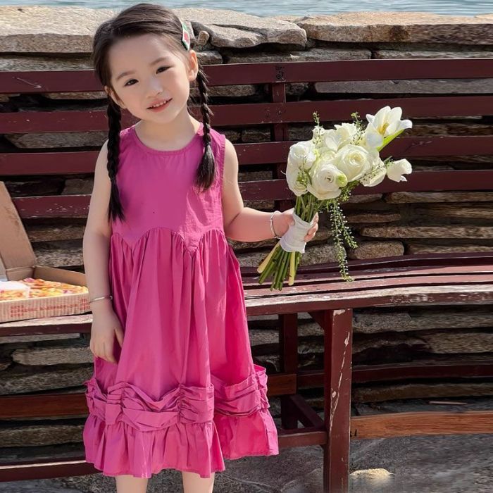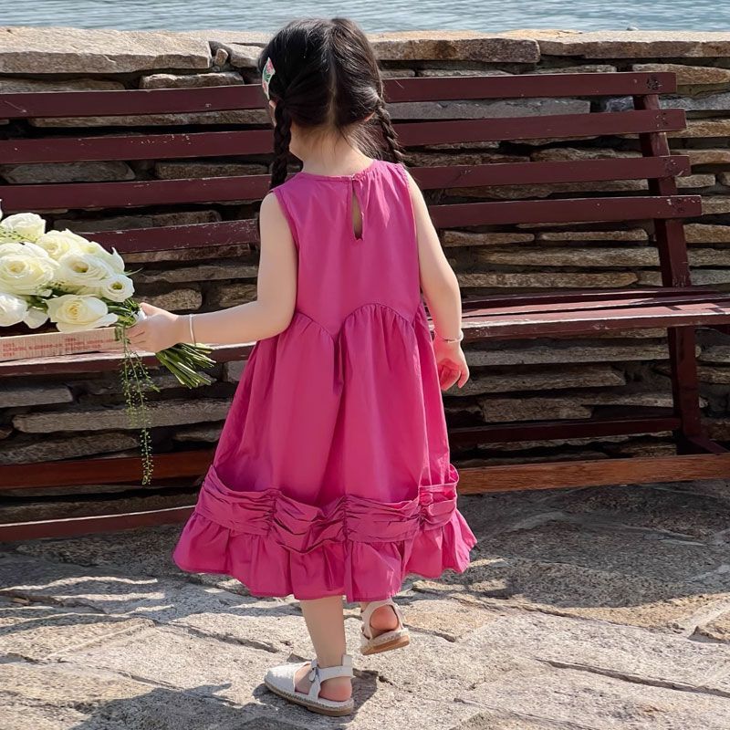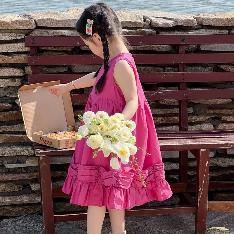 여자 민소매 원피스 2025 새로운 어린이 서양식 공주 스커트 곡선 허리 섹션 머리 주름 조끼 치마스토어 가기
