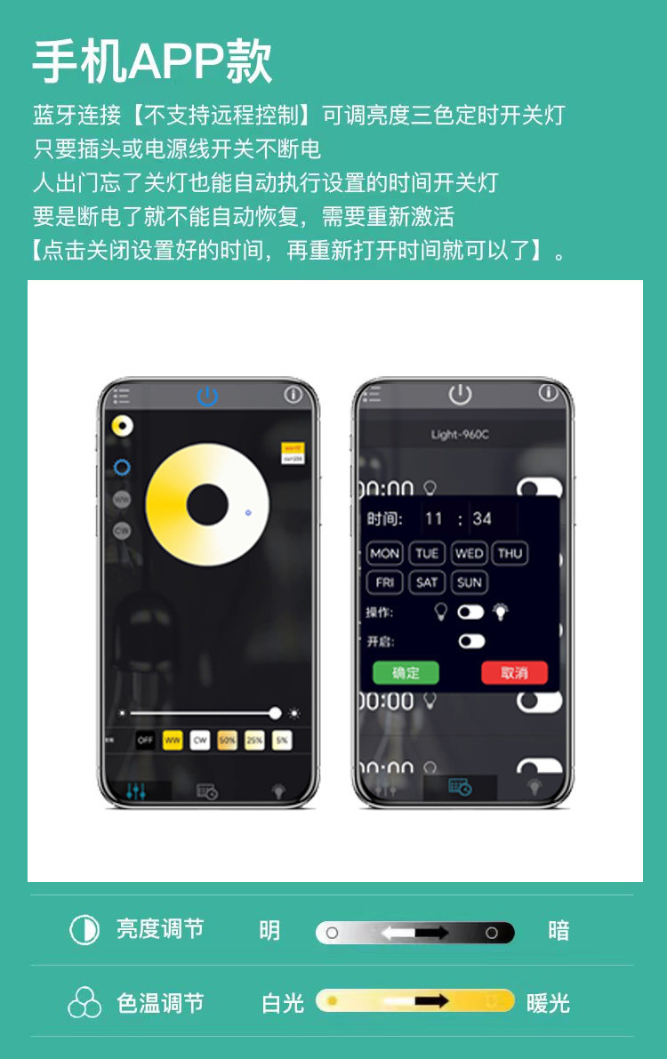 • 7W 리모콘 + 휴대폰 APP [밝기 3색 타이머 스위치 조명]