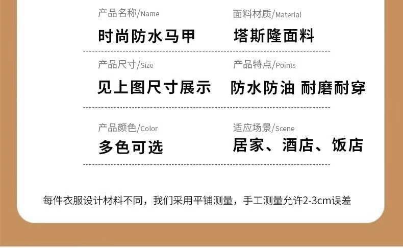 남성과 여성을위한 새로운 조끼 앞치마 주방 요리 방수 및 내유성 가정용 의류 커피 이발소 케이터링 스페셜스토어 가기