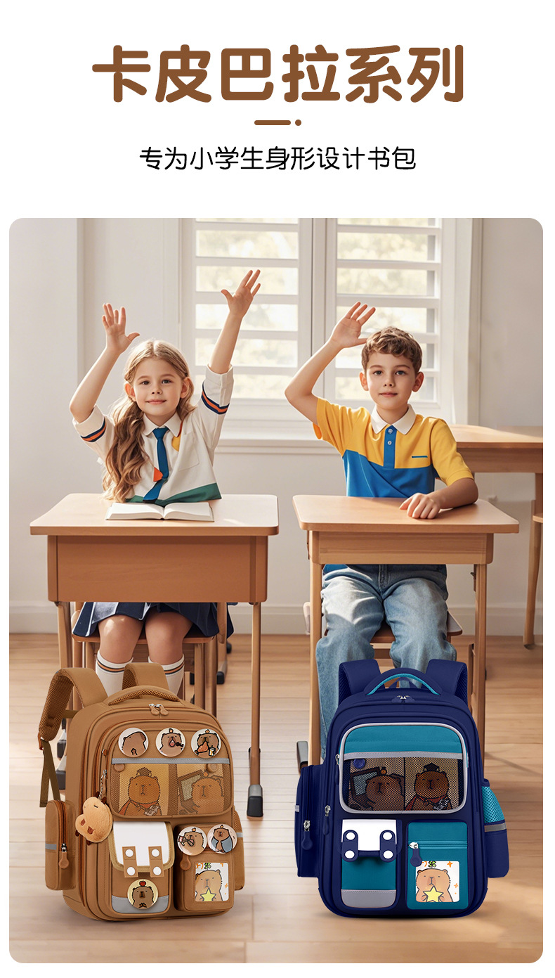 새로운 Kapibala 어린이 부담을 줄이는 초등학교 가방 대용량 1, 2, 3, 6 학년 남성과 여성 배낭 도매스토어 가기