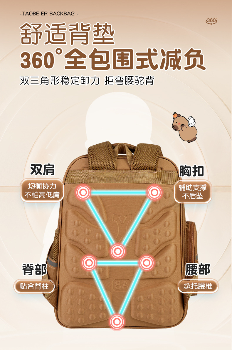 새로운 Kapibala 어린이 부담을 줄이는 초등학교 가방 대용량 1, 2, 3, 6 학년 남성과 여성 배낭 도매
