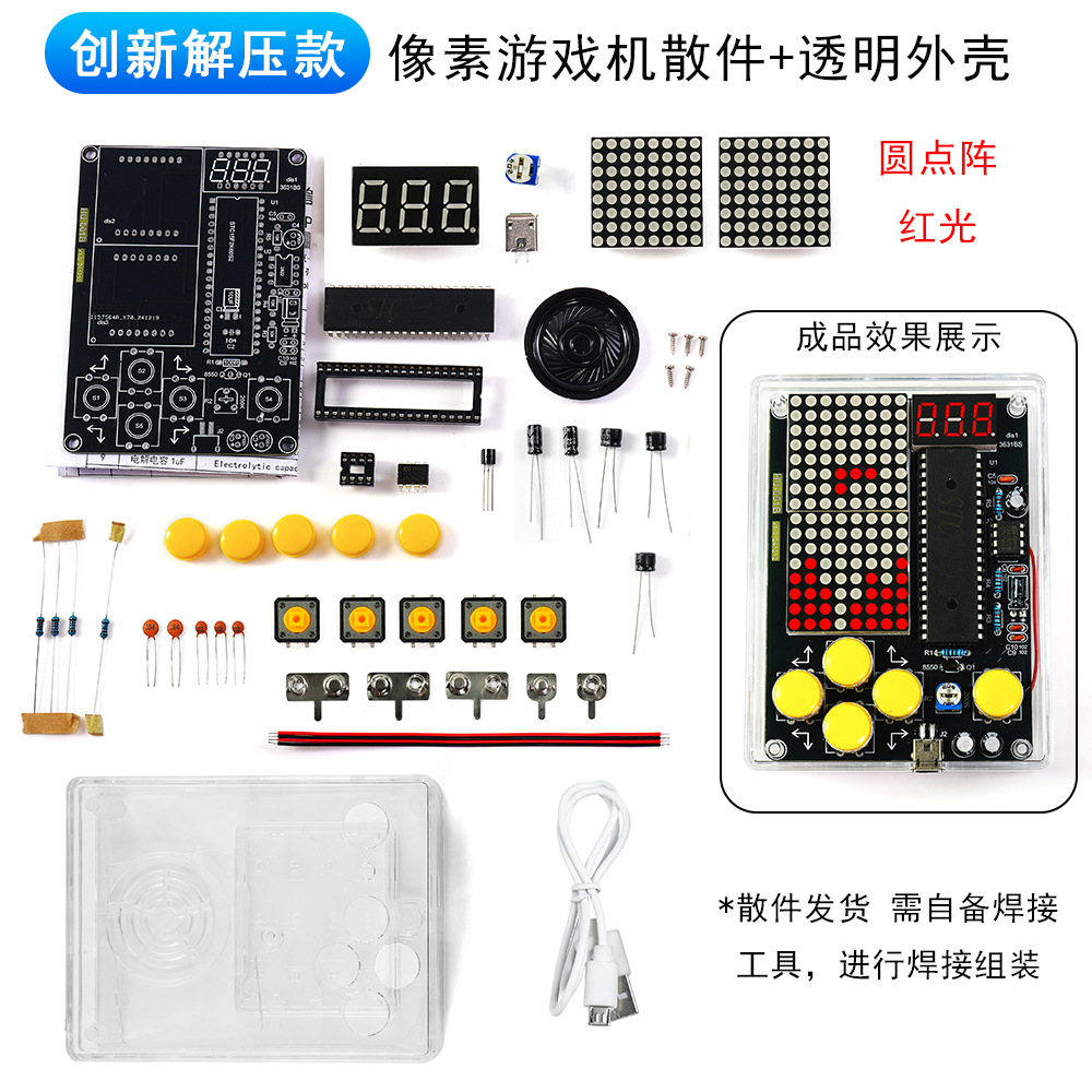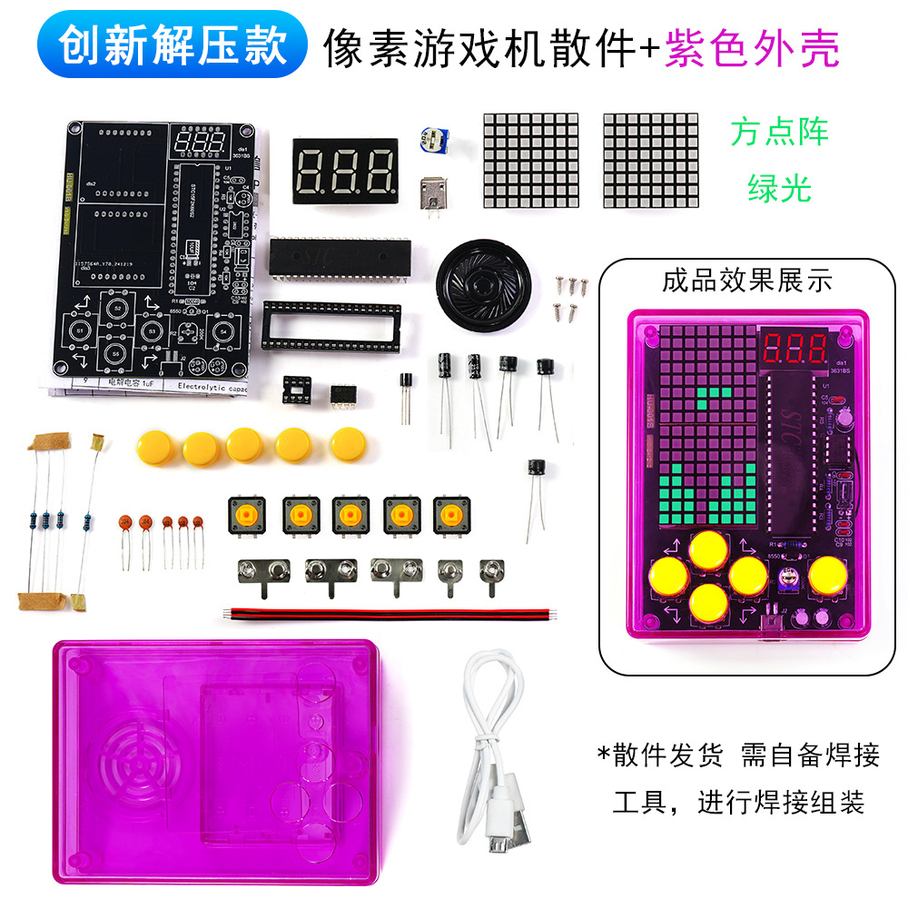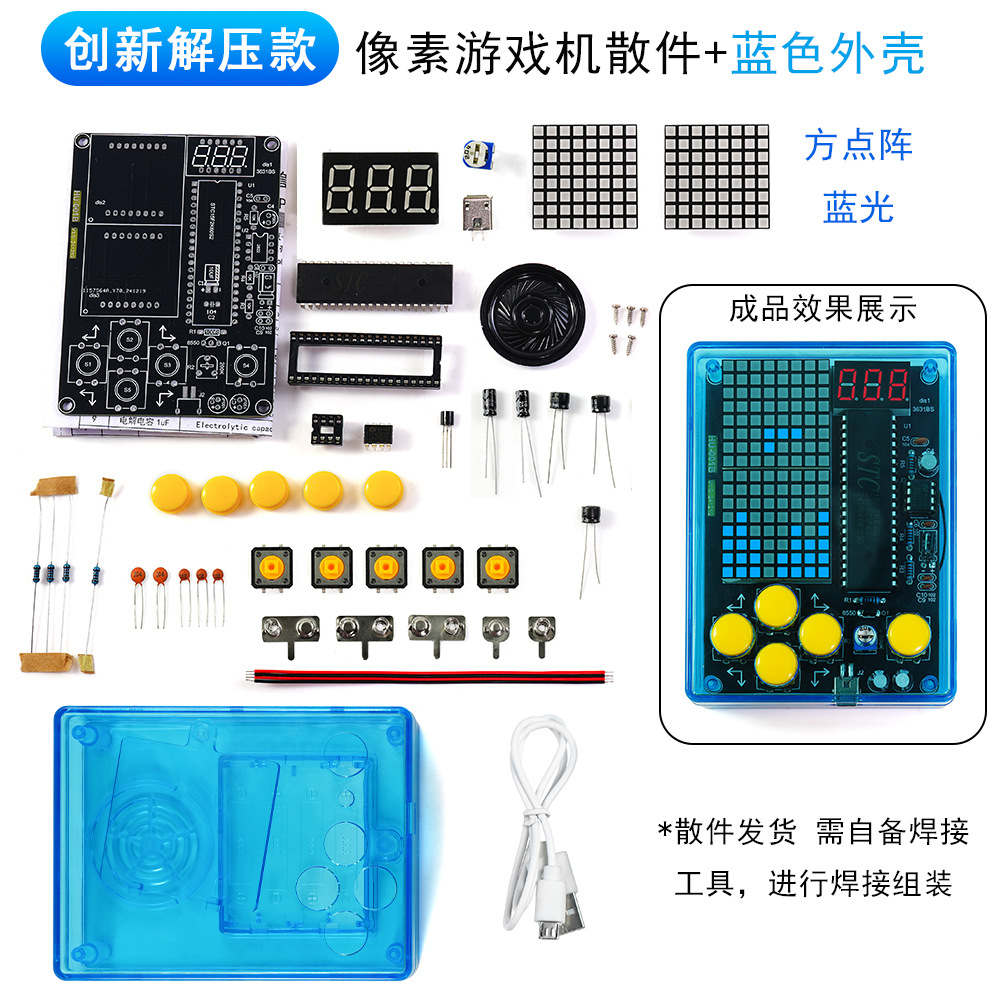 픽셀 게임 기계 DIY 키트 전자 나무 물고기 테트리스 휴대용 기계 51 단일 칩 마이크로 컴퓨터 용접 연습 부품스토어 가기