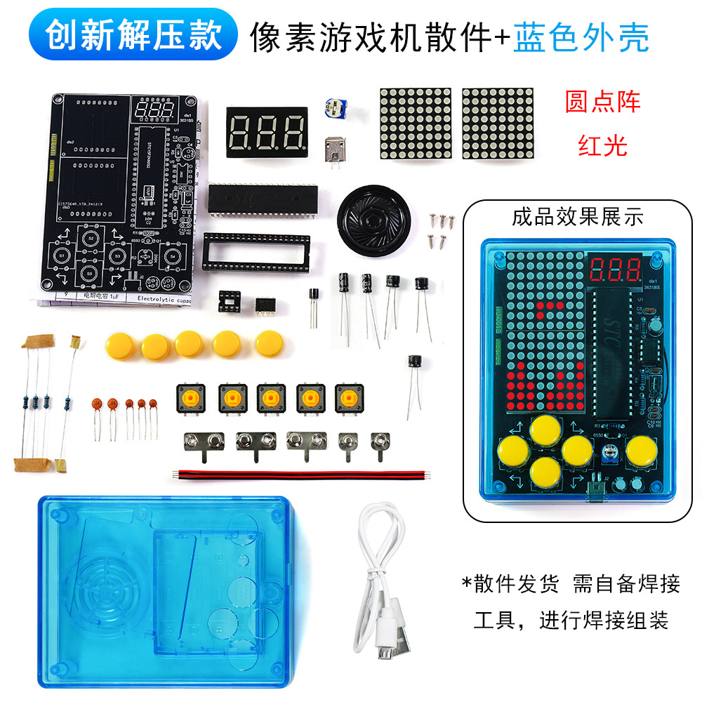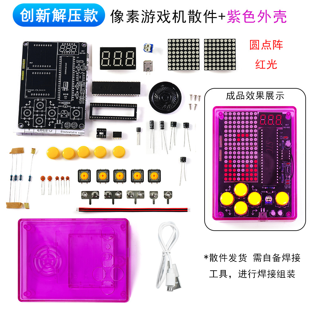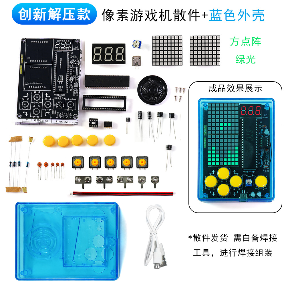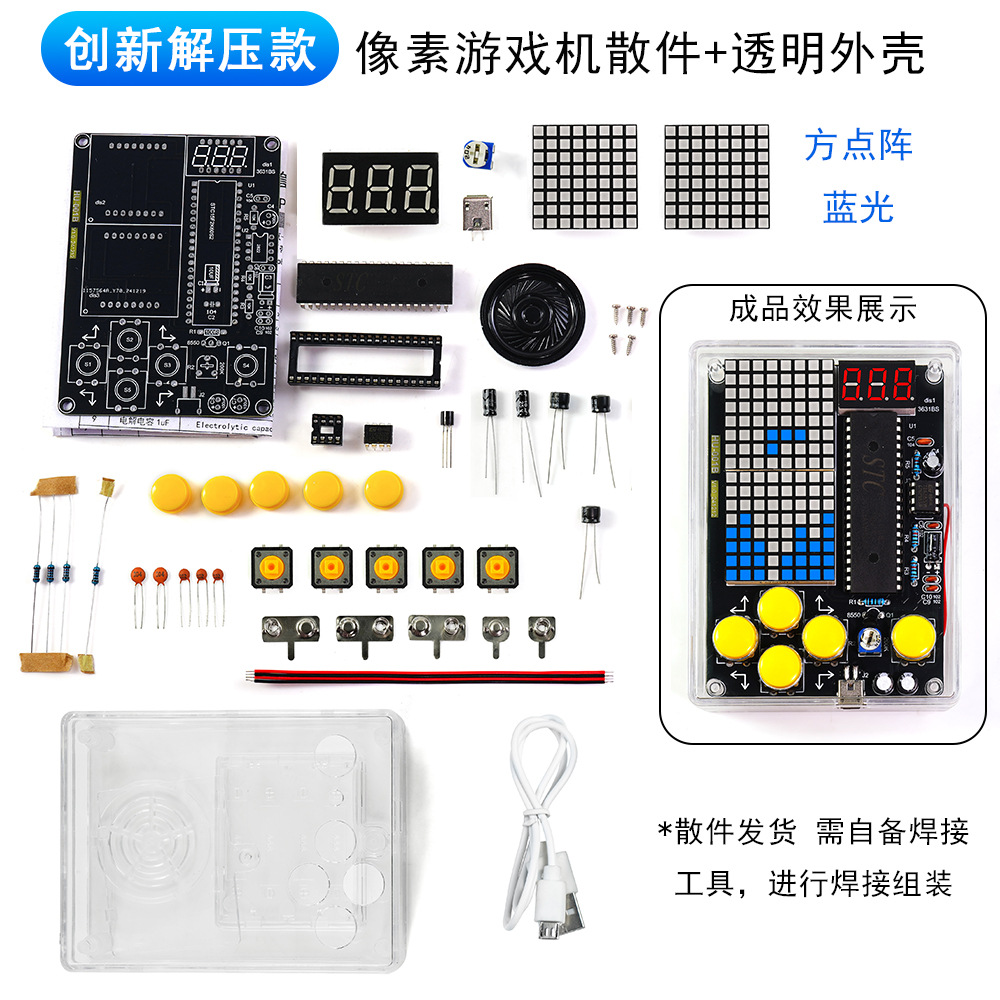 픽셀 게임 기계 DIY 키트 전자 나무 물고기 테트리스 휴대용 기계 51 단일 칩 마이크로 컴퓨터 용접 연습 부품스토어 가기
