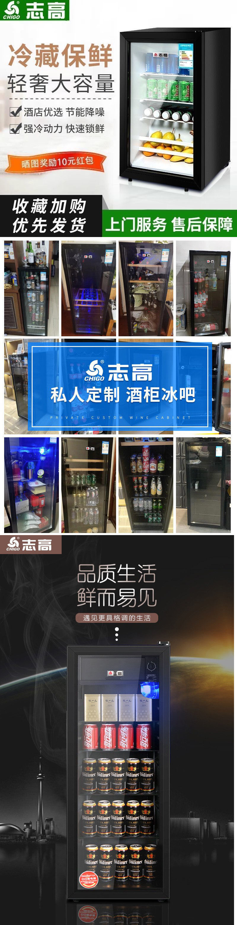 Chigo 홈 와인 캐비닛 사무실 거실 신선 유지 캐비닛 차 음료 소형 냉장 항온 캐비닛 투명 아이스 바 냉장고스토어 가기