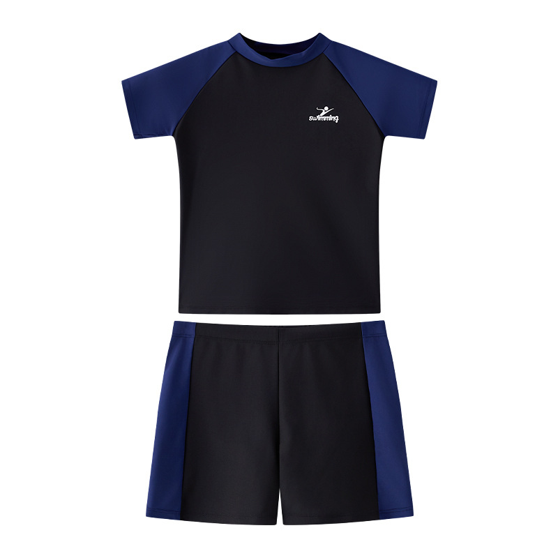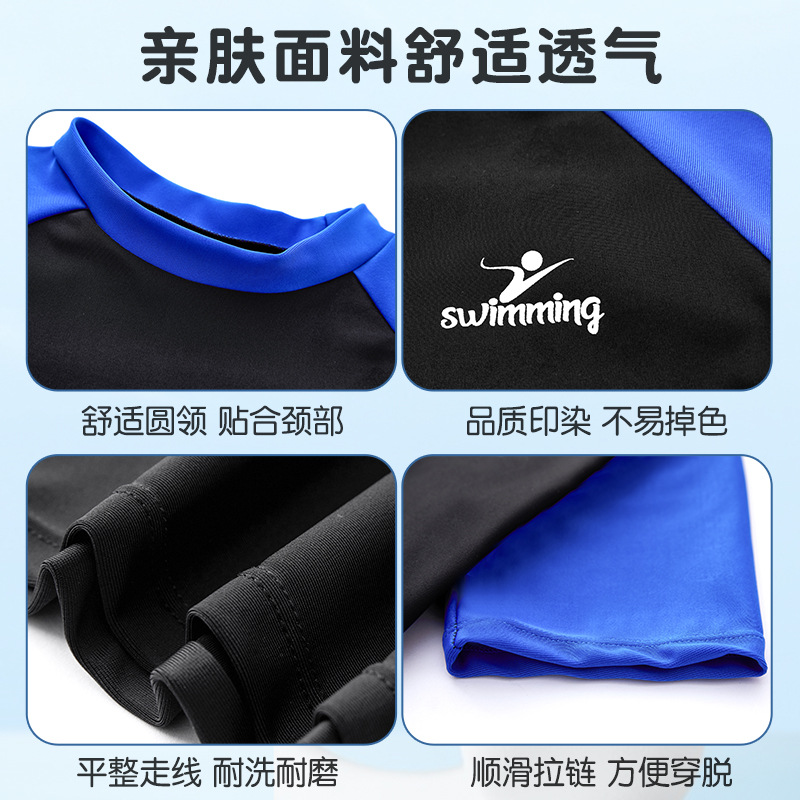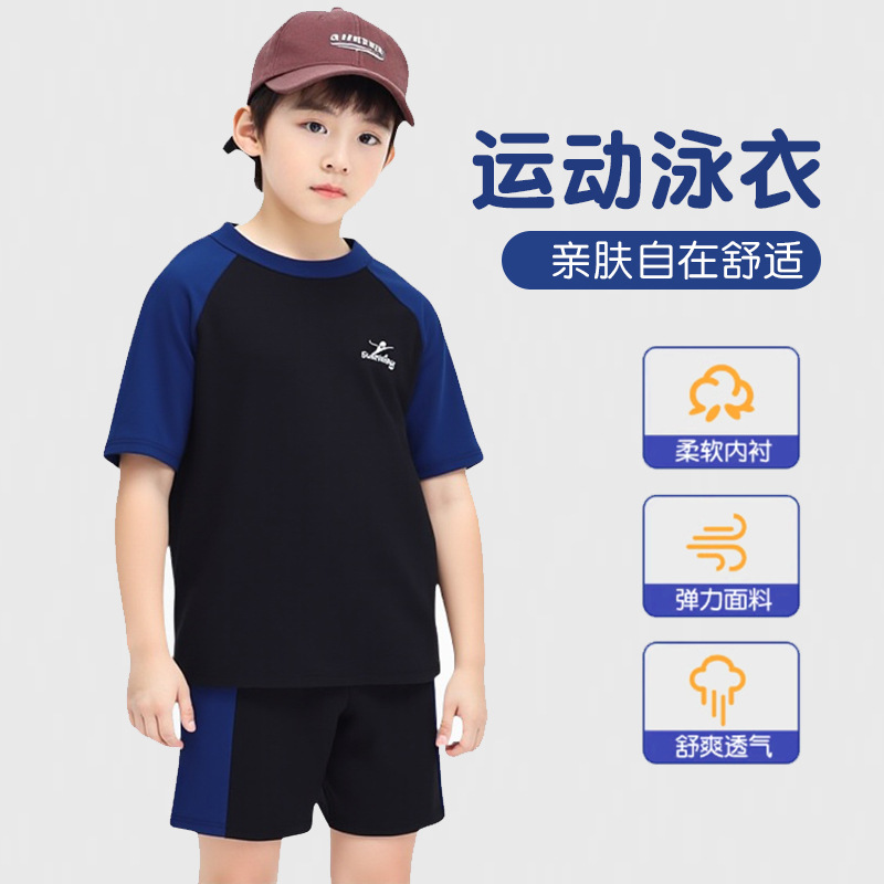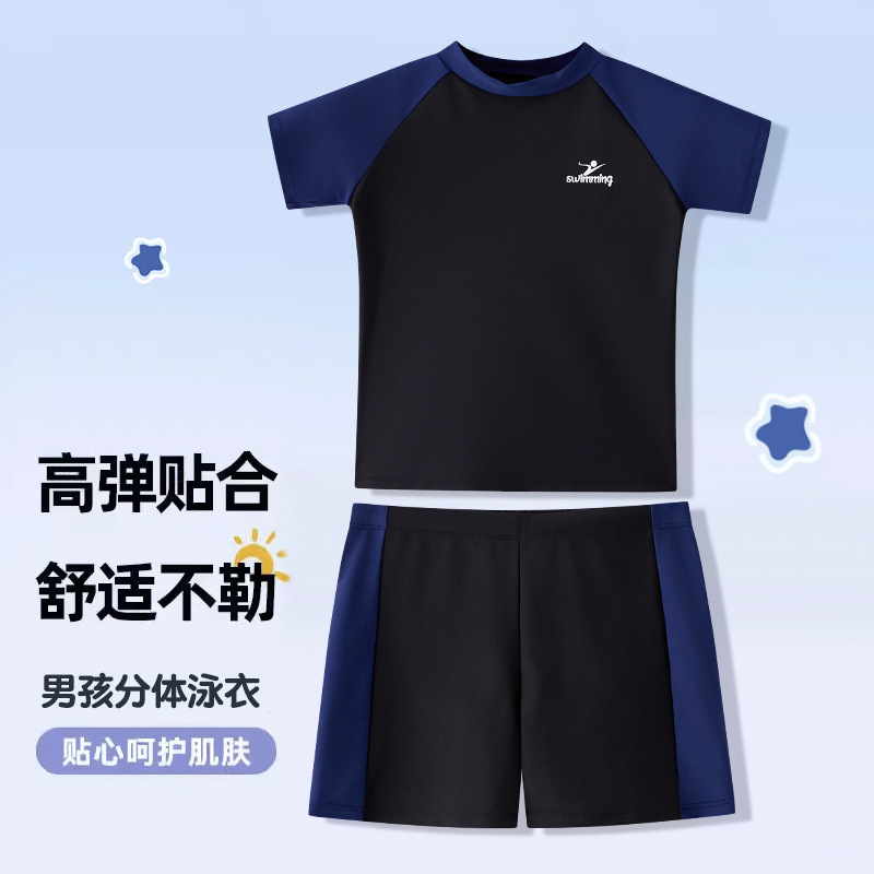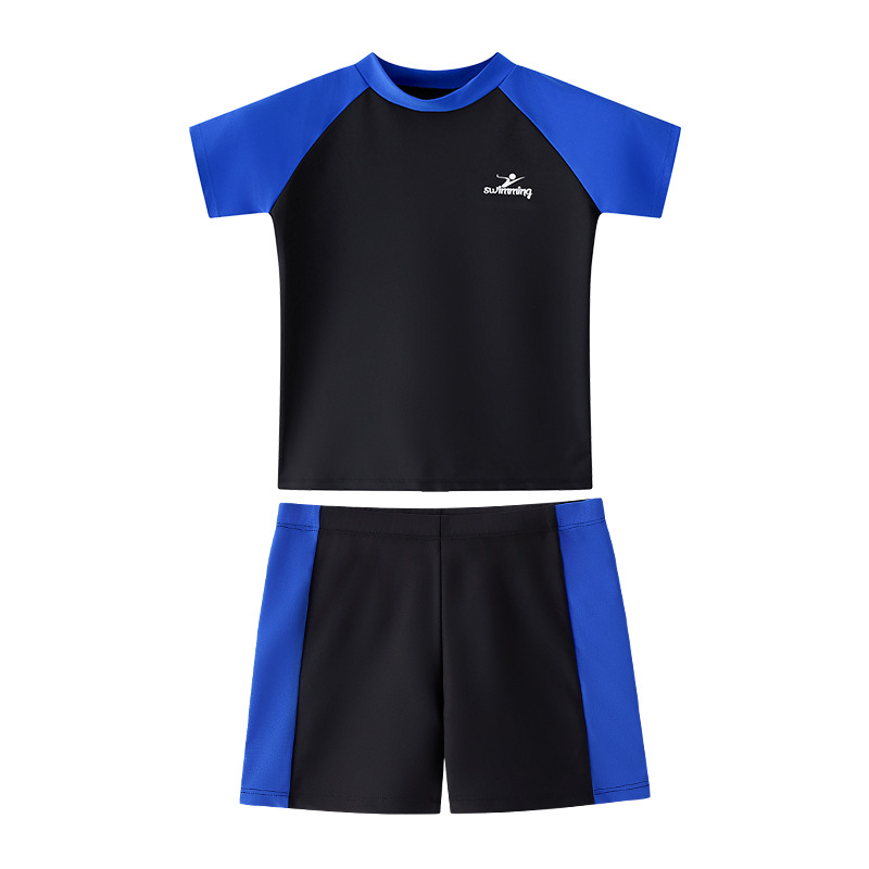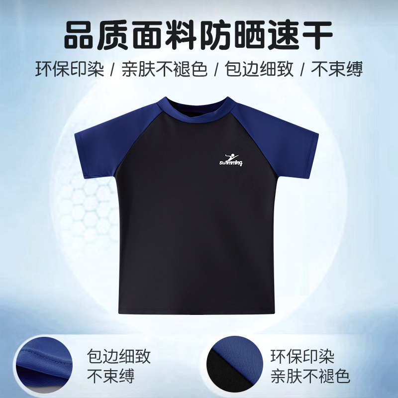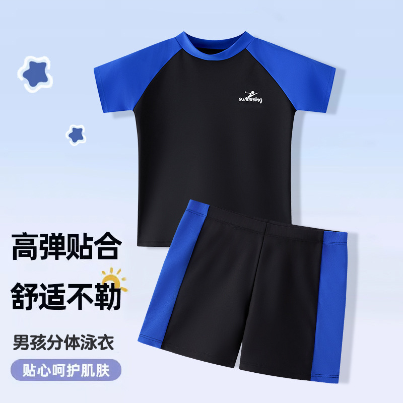 2025 아동 수영복 소년 중대형 아동 스플릿 수영복 세트 베이비 블루 스플라이스 라글란 슬리브 수영복스토어 가기