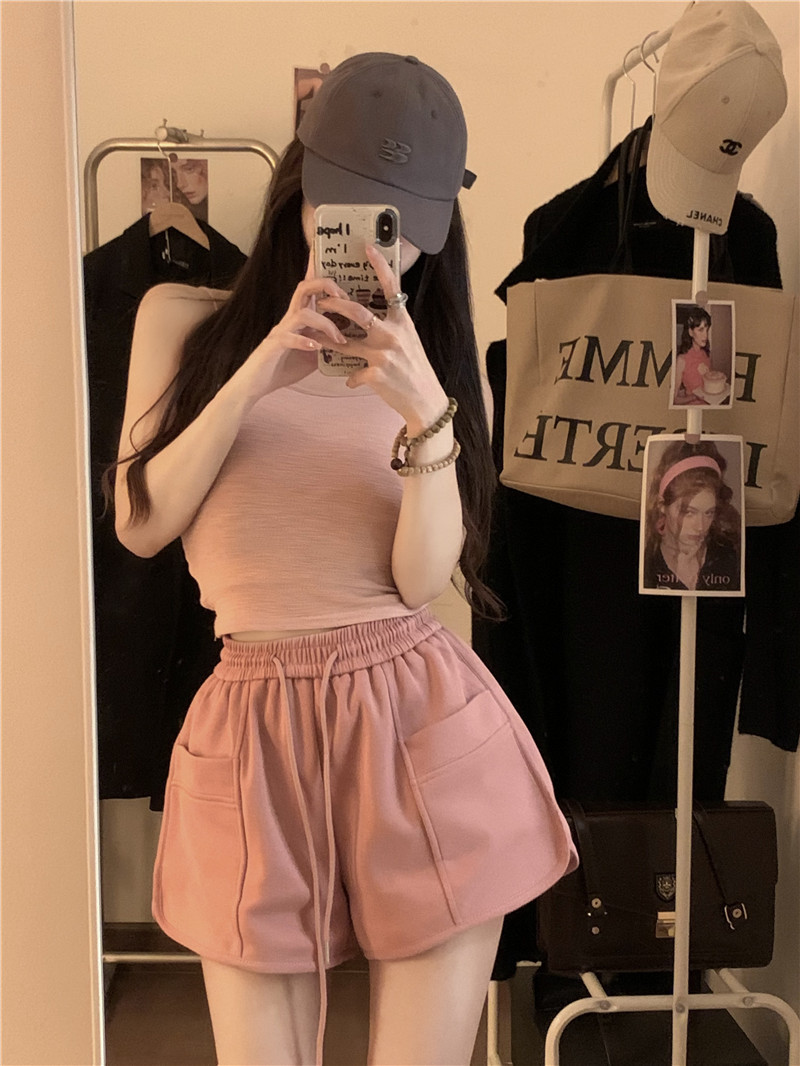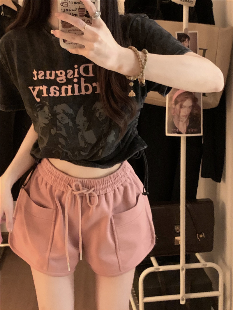 TikTok 퀄리티 핫 걸스 스포츠 반바지 여자 2025 년 여름 새로운 외부 뜨거운 바지를 입고 높은 허리 슬리밍 A-반바지스토어 가기