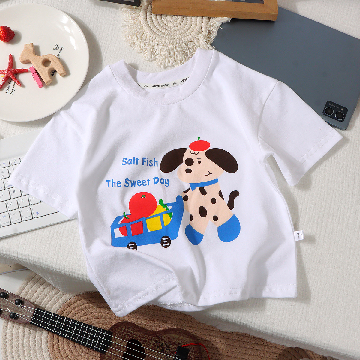 100 어린이 면 짧은 소매 티셔츠 여름 소년 소녀 최고 큰 어린이 짧은 소매 어린이 짧은 소매 공장 배치