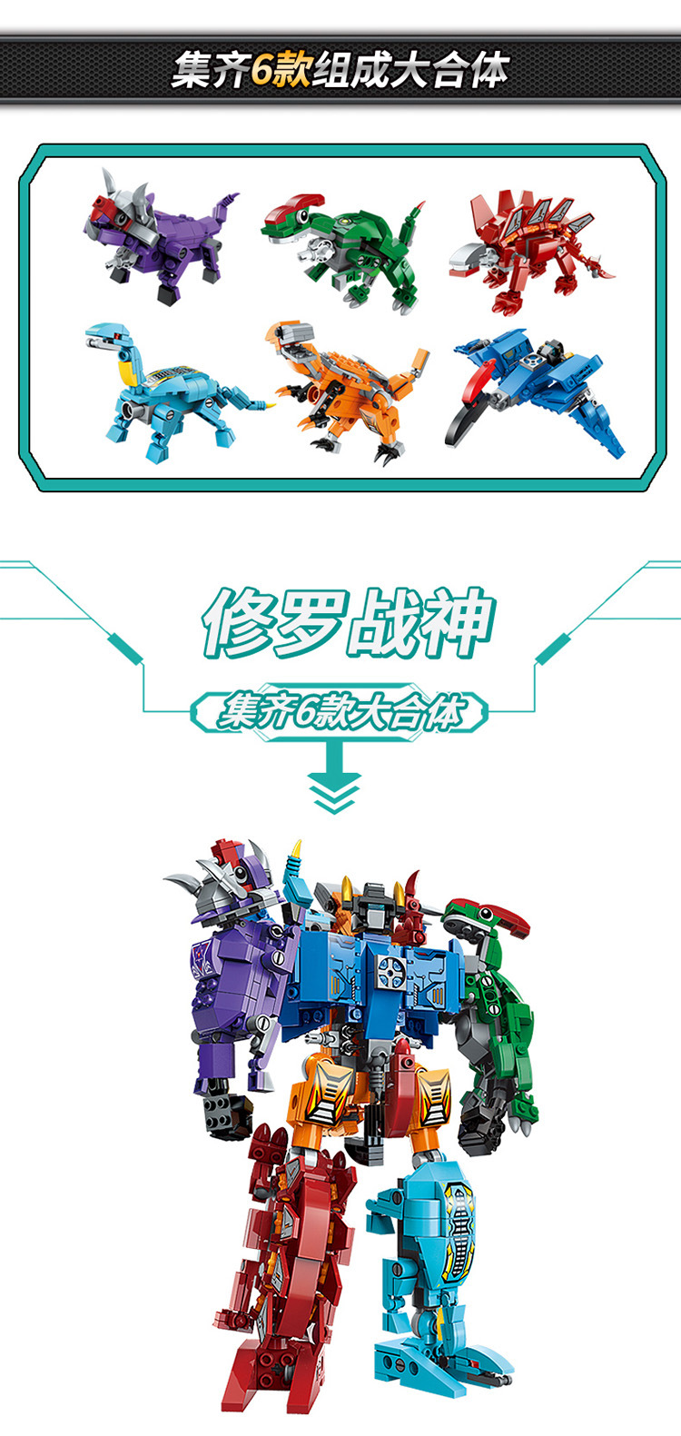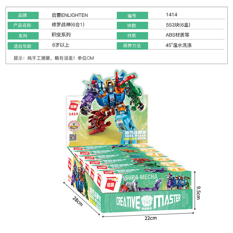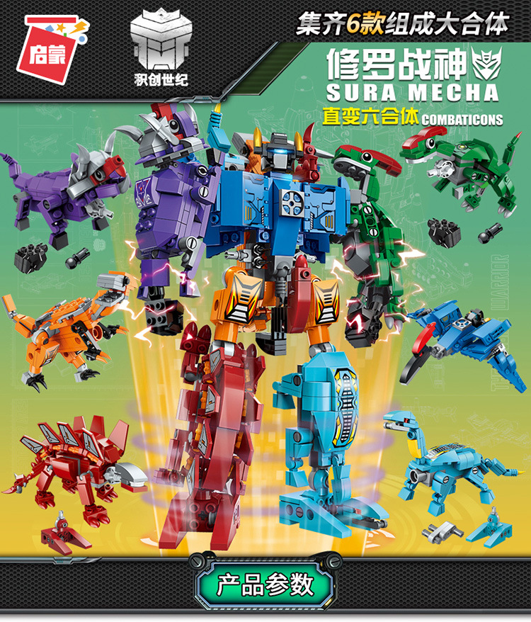啓蒙 빌딩 블록 1414 아수라 전쟁의 신 어린이 조립 공룡 변형 로봇 변형 소년 장난감 킹콩스토어 가기