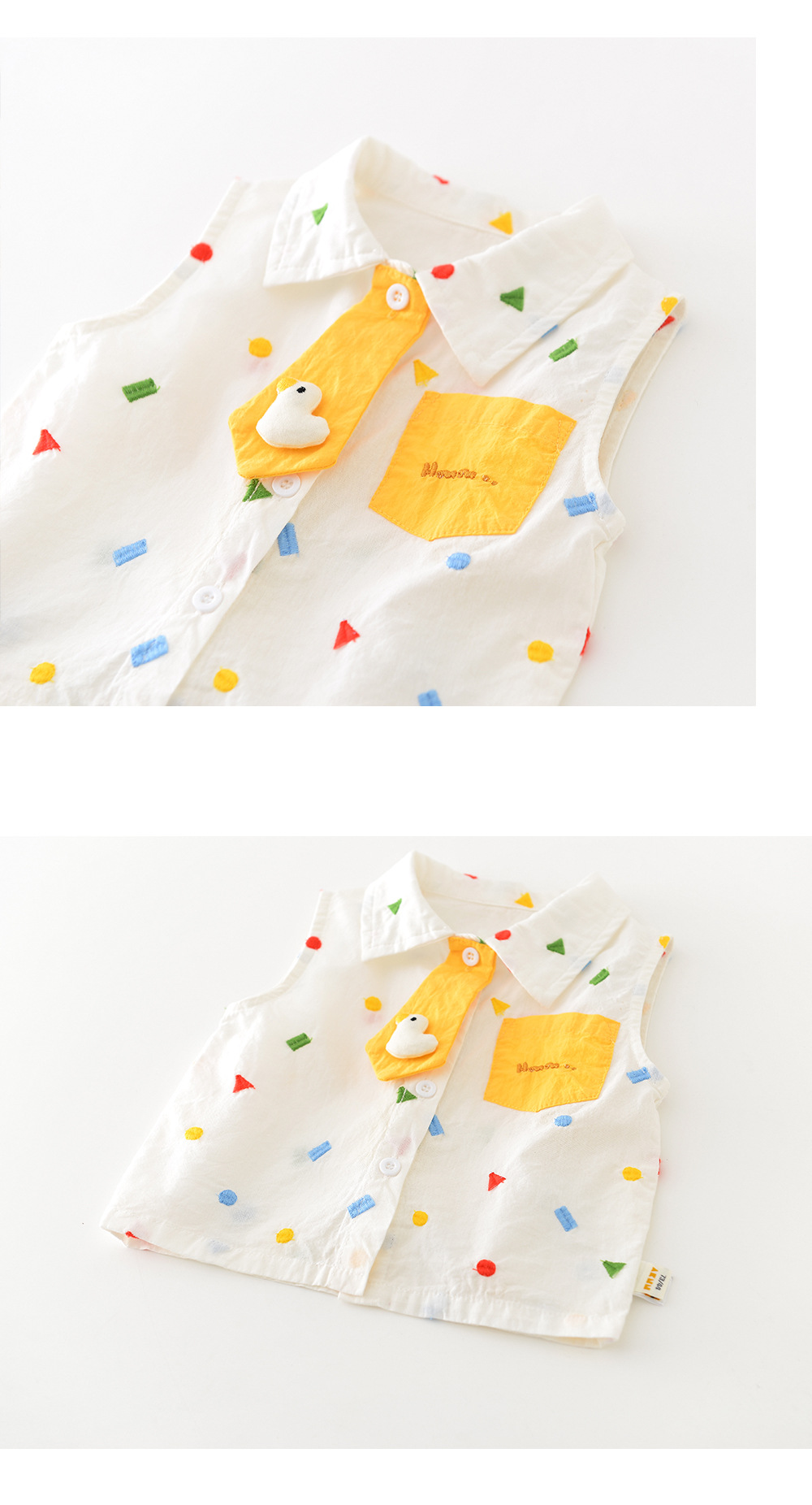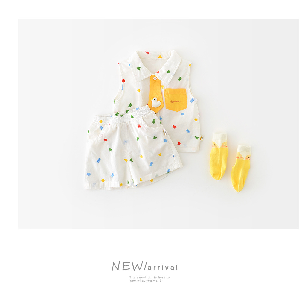 2025 년 여름 한국 전체 자수 기하학적 조끼 세트 아기 유아 만화 오리 옷깃 투피스 52199스토어 가기