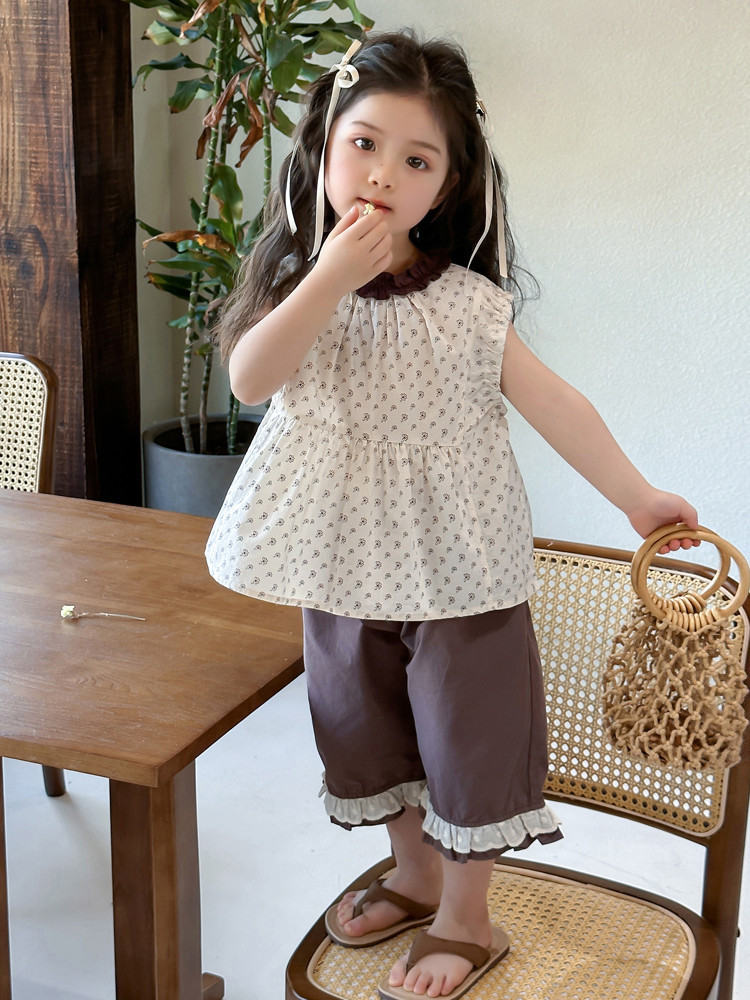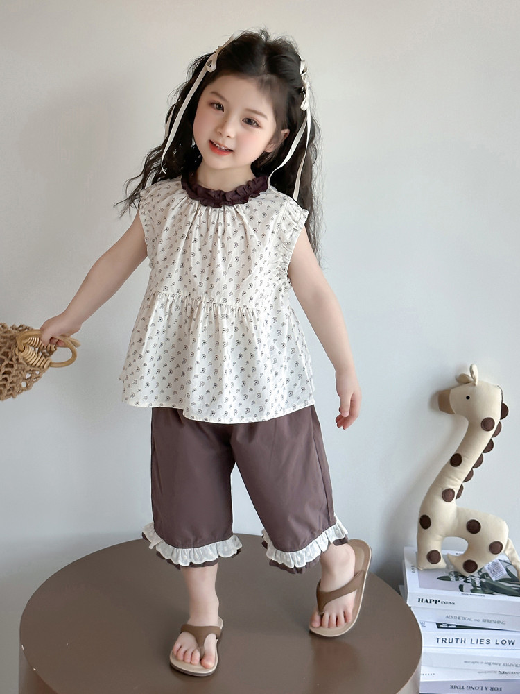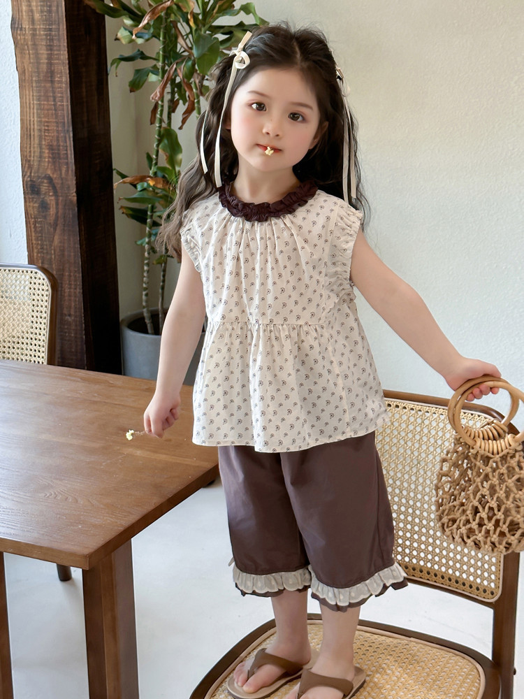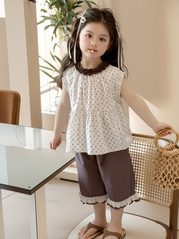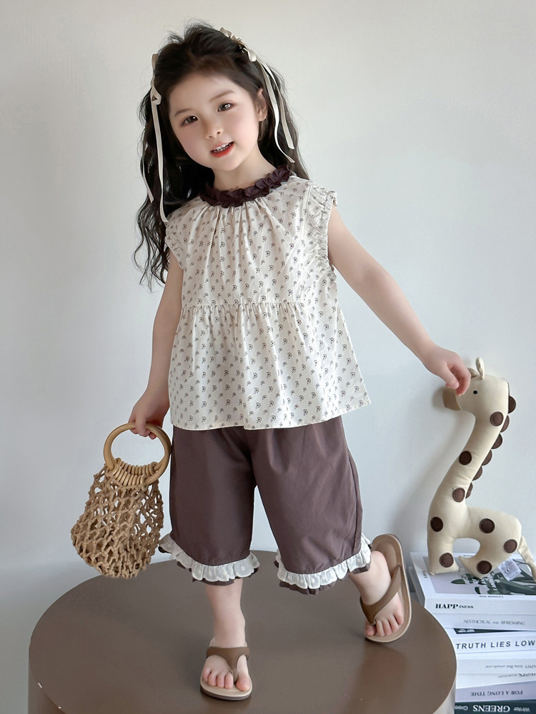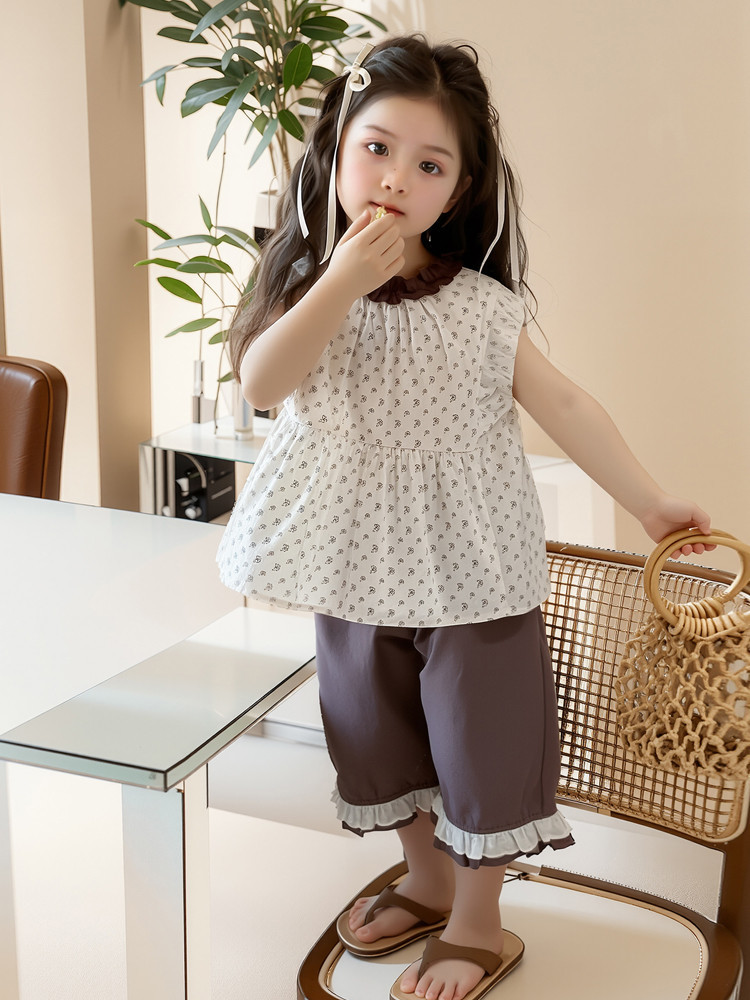 모리 소녀의 여름 옷 세트 2025 새로운 어린이 반바지 여름 얇은 아기 소녀의 조끼 여름 옷